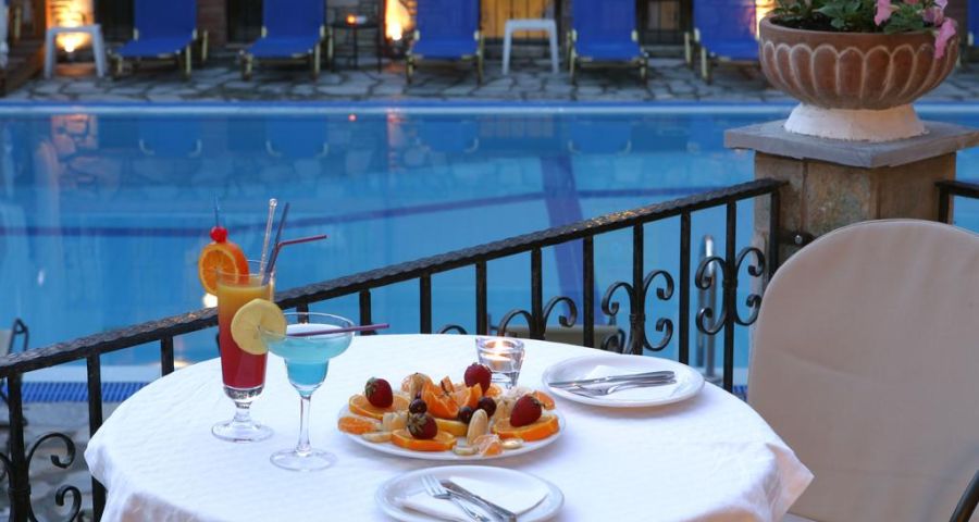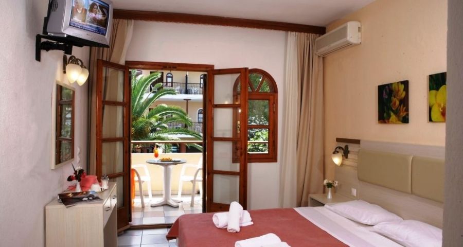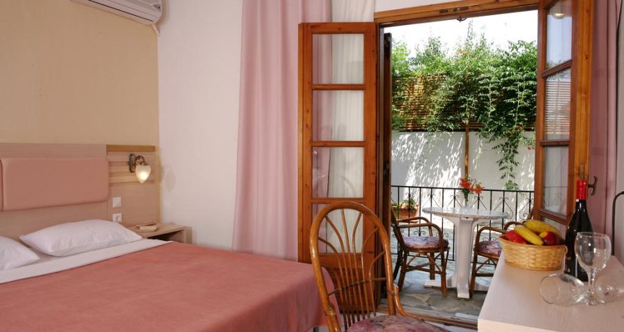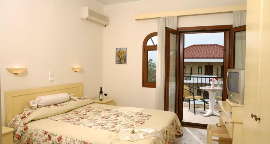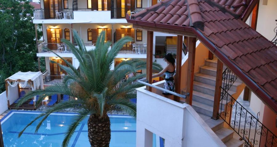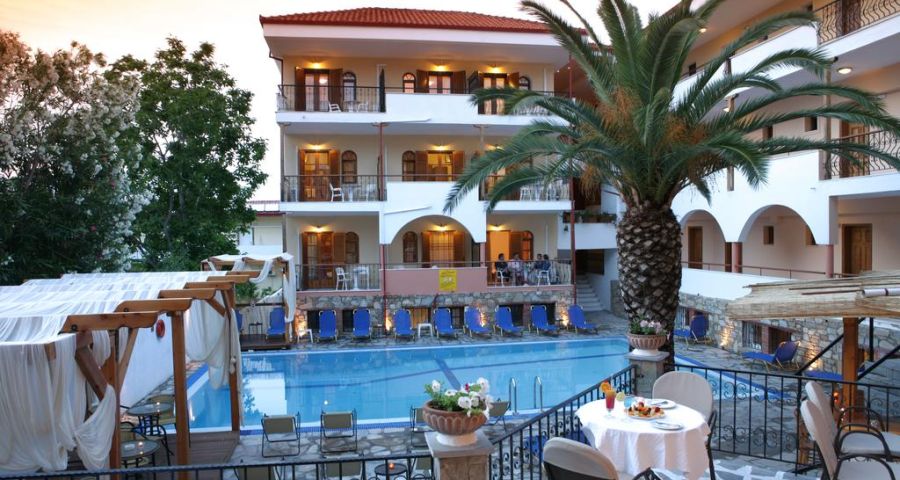 Комфортни сгради гръцки стил, рецепция, басейн, тераса за слънчеви бани, интернет, градина с кът за отдих, подходящ за семейства с деца, сейф (платен), паркинг