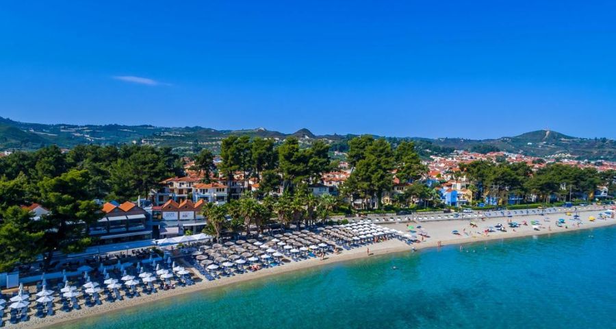 Flegra Beach е нов луксозен хотелски комплекс, разположен на брега на морето. Хотелът се намира на пешеходно разстояние от центъра на популярния курорт село Пефкохори с много магазини, гръцки традиционни таверни, ресторанти и барове