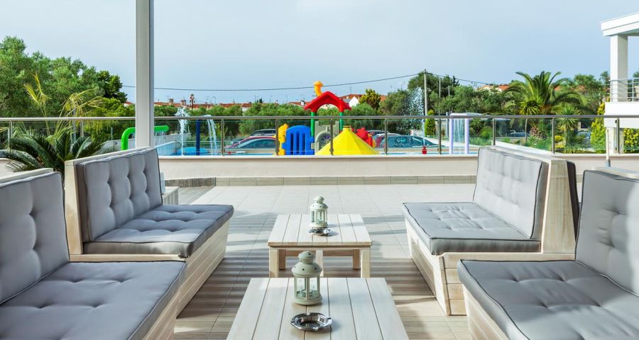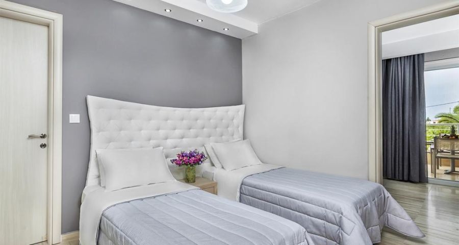 Комфортни сгради гръцки стил, просторна градина, рецепция, румсървиз, интернет, паркинг