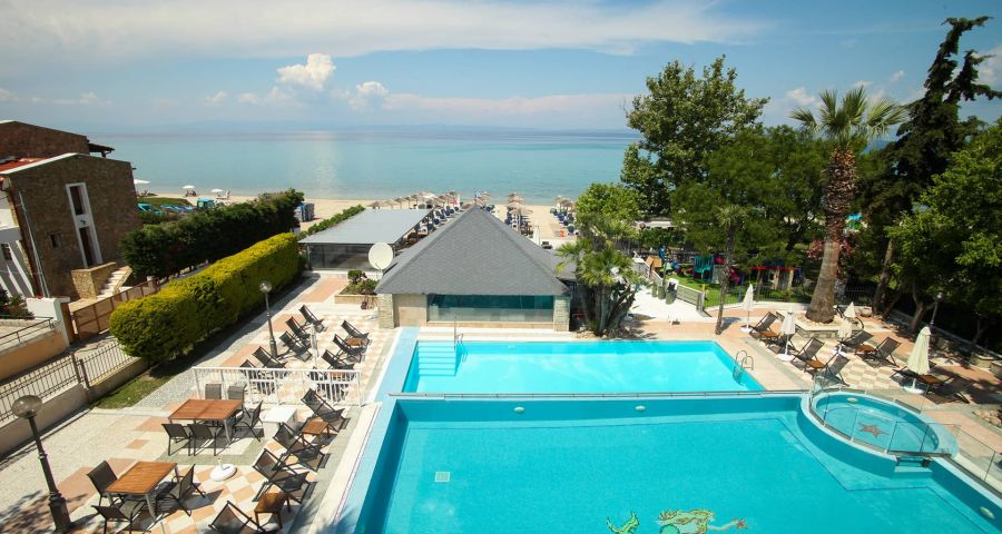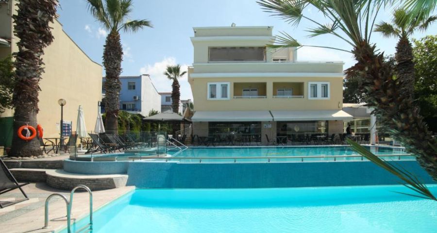 Уютен хотел, разположен в градина, на брега на морето. Naias Beach се намира съвсем близо до центъра на оживения курорт Ханиоти и е подходящ за търсещите активна почивка.