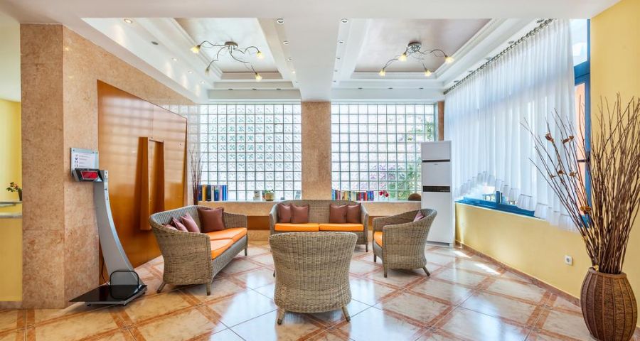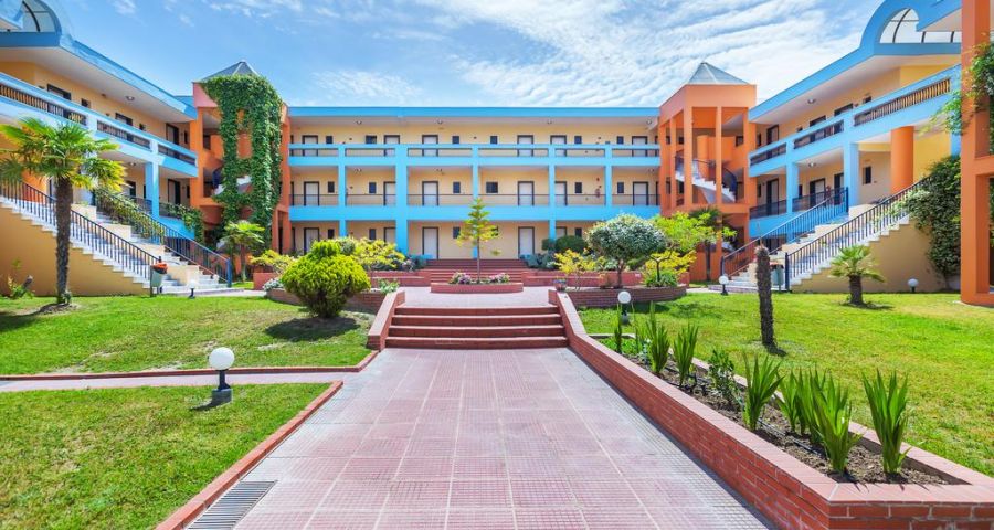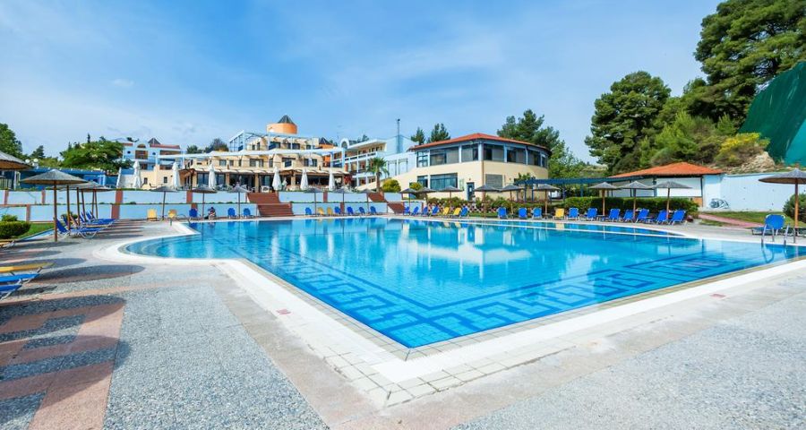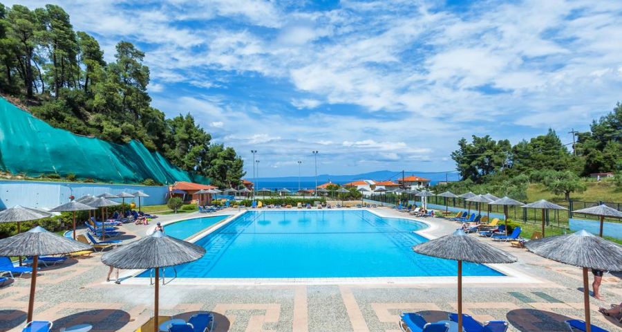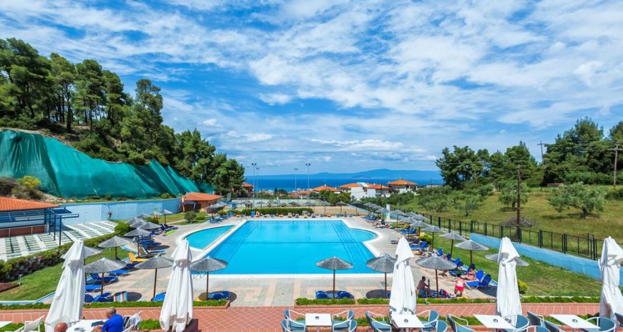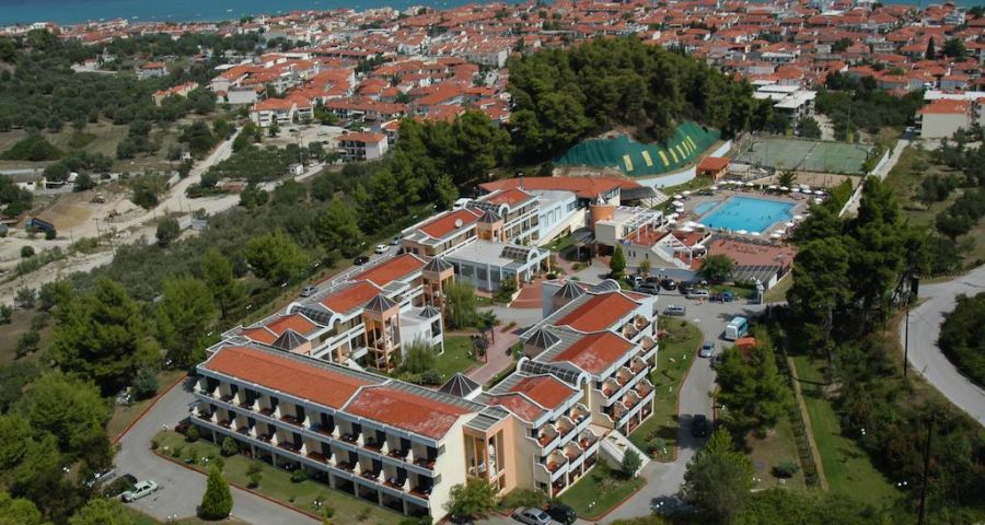 Хотел Atrium е разположен сред маслинови и борови дървета, над изумрудените води на залива Касандра на полуостров Халкидики. Той предлага безплатен трансфер до селото и плажа. Хотелът е подходящ за спокойна семейна почивка.