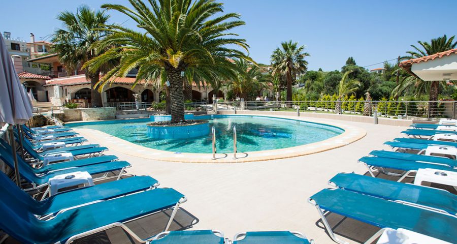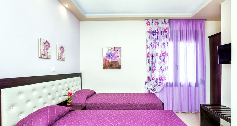 Малък хотел с уютна територия с градина. Само на няколко крачки разстояние се намира центърът на популярното курортно селище Пефкохори, с развита туристическа инфраструктура. Хотелът е подходящ като за семеен отдих, така и за по-млади гости.
