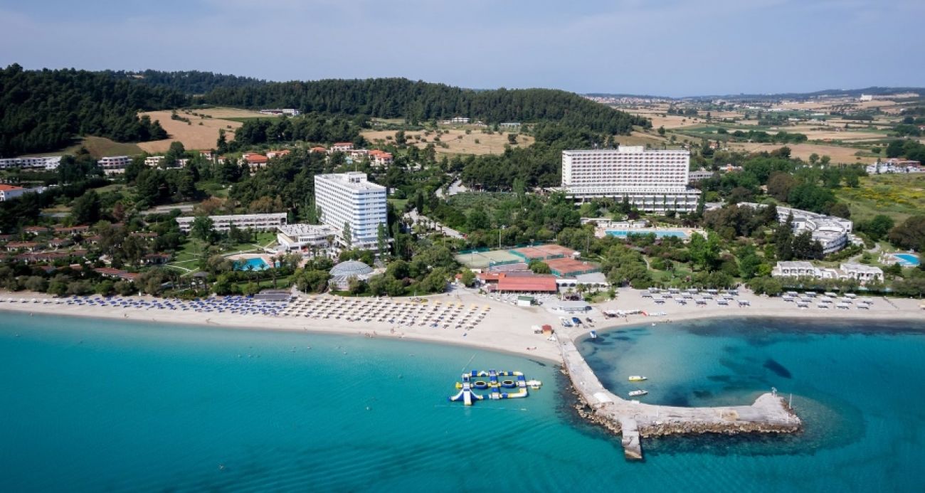 Athos Palace Hotel е разположен в изключително живописен район, сред красиви градини с екзотична растителност. Обширният му пясъчен плаж е един от най-добрите на п-в Касандра. Съчетанието на великолепни природни пейзажи, професионално обслужване и различни забавления прави почивката тук наистина незабравима.