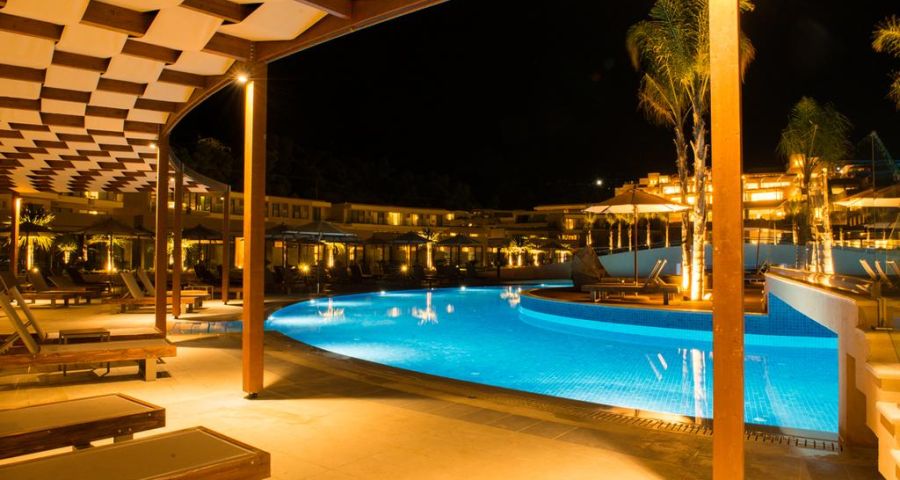 Денонощна рецепция, няколко външни басейни, басейни с термална вода, детска площадка, собствено пристанище, градина, четири ресторанта, Wi Fi, паркинг