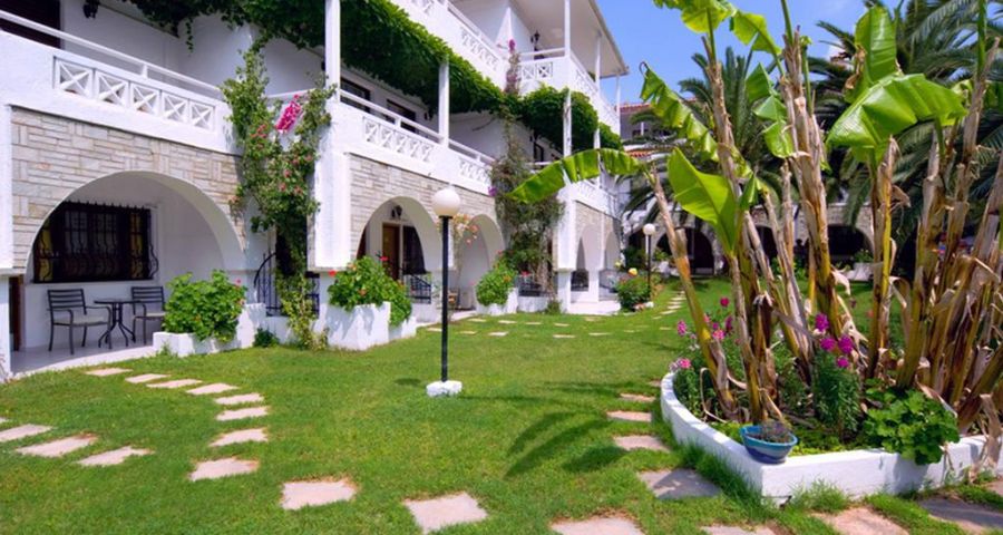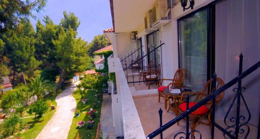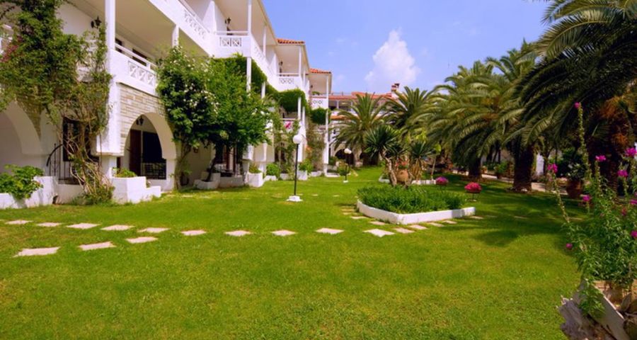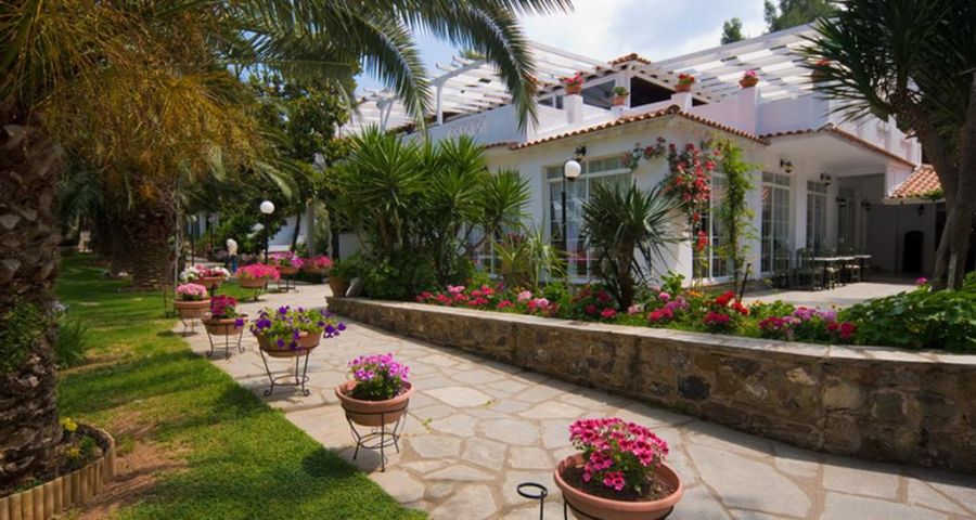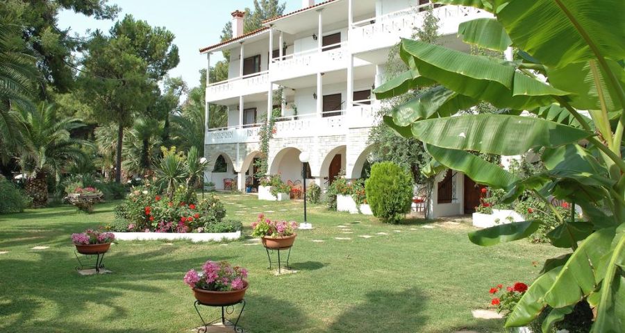 Хотелът се намира на тихo място сред сенчести пинии и има изключително красива градина със средиземноморска растителност. Разположен е на брега на морето с хубав пясъчен плаж, добро обслужване и вкусна храна.