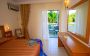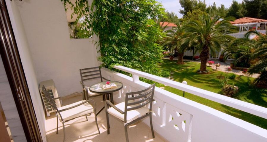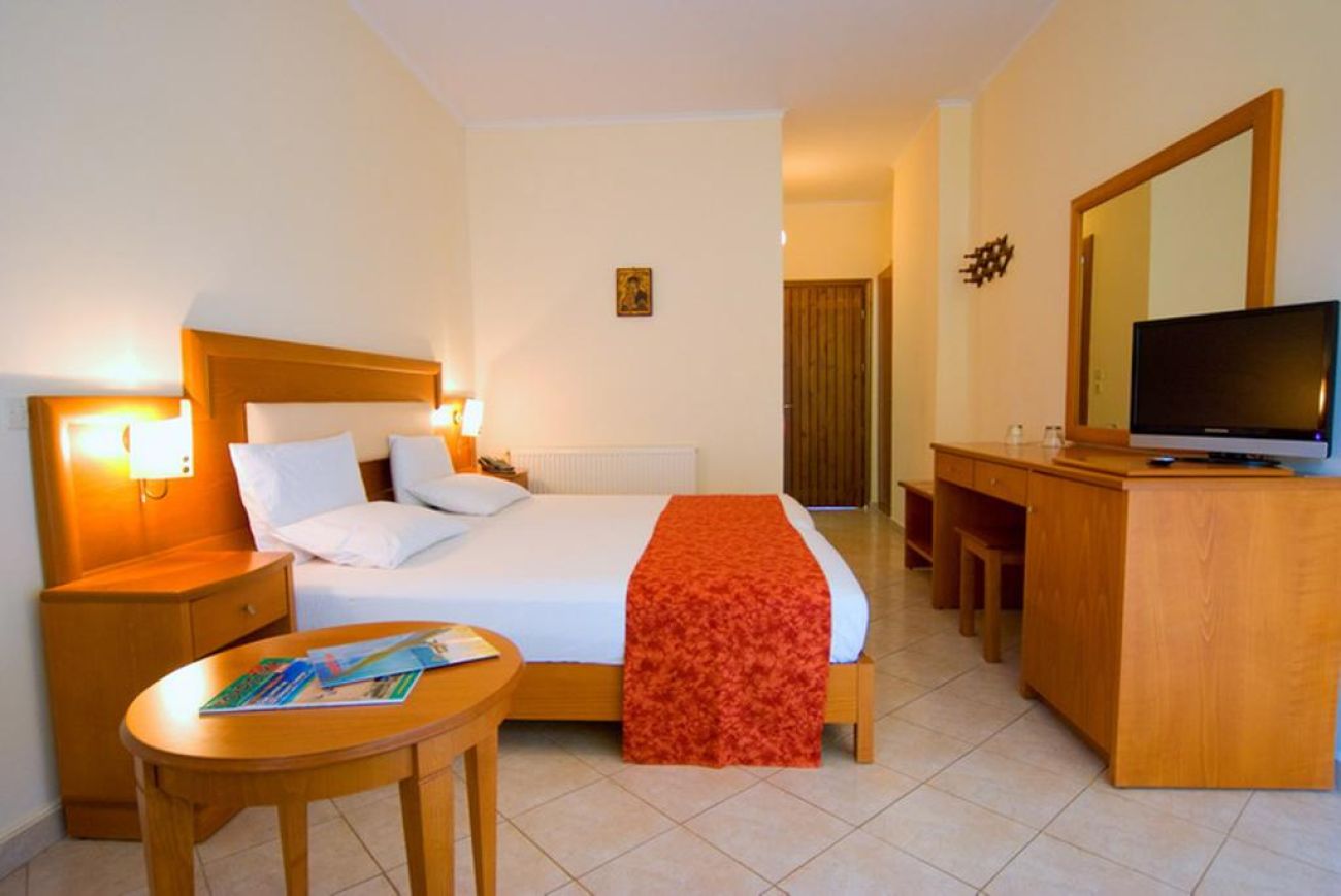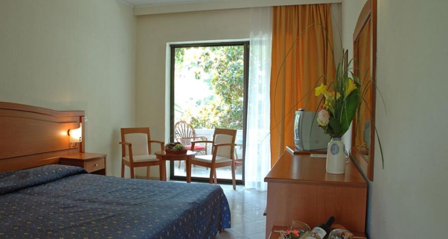 Климатик, балкон или веранда с изглед към морето или тучните градини, легла със анатомични матраци, вана или душ кабина, телевизор LCD, сателитни канали, телефон, минибар