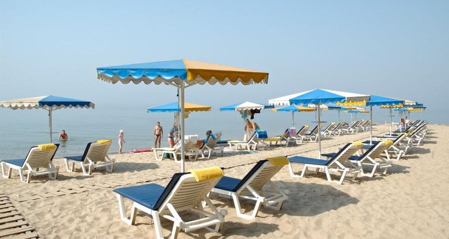 Собствен пясъчен плаж, басейн, тереса, градина, детска площадка