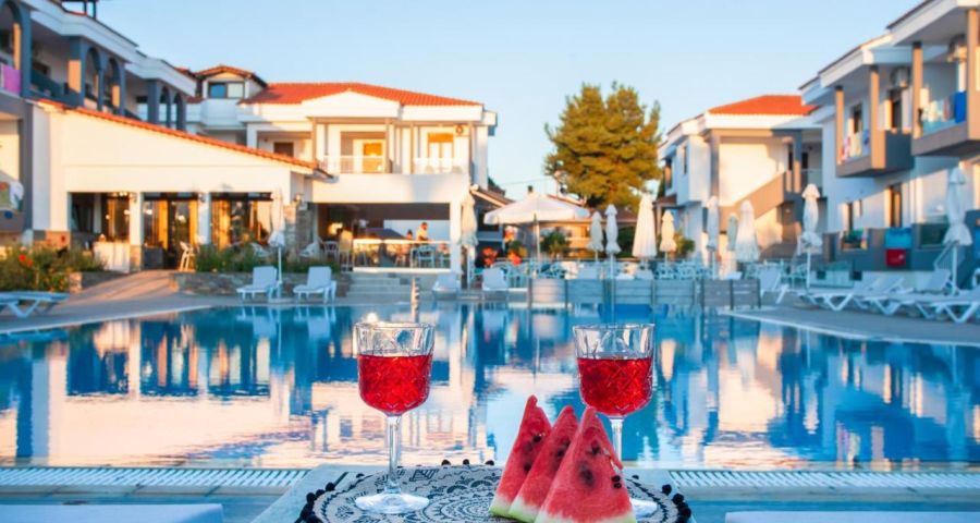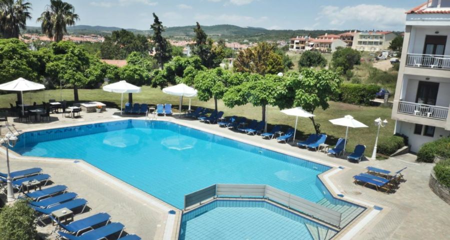 Малък уютен хотел състоящ се от 4 корпуса, заобиколени от великолепна градина. Разположен е на полуостров Ситония, на 20 км от селище Неос Мармарас, на 400 м от селище Никити, на 97 км от летище "Македония" в Солун Подходящ за икономична почивка.