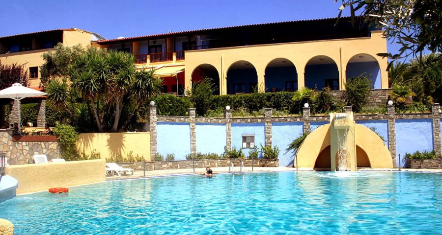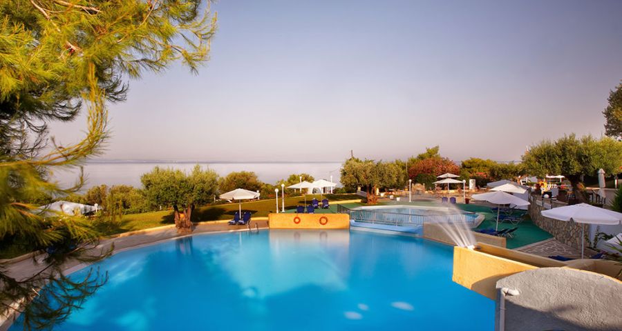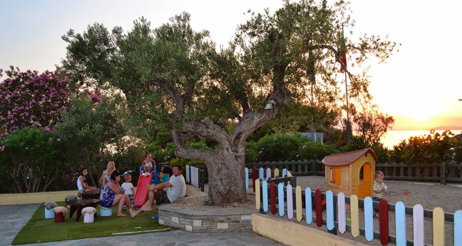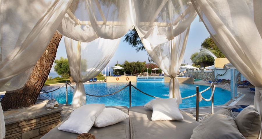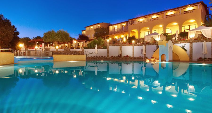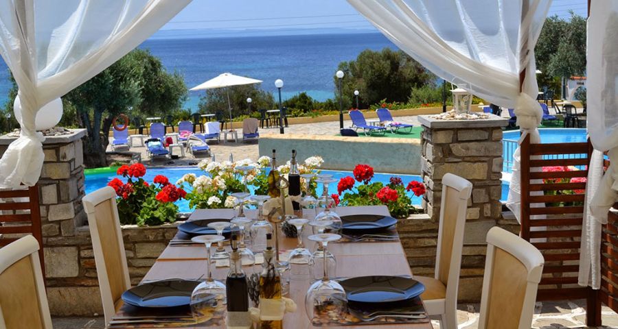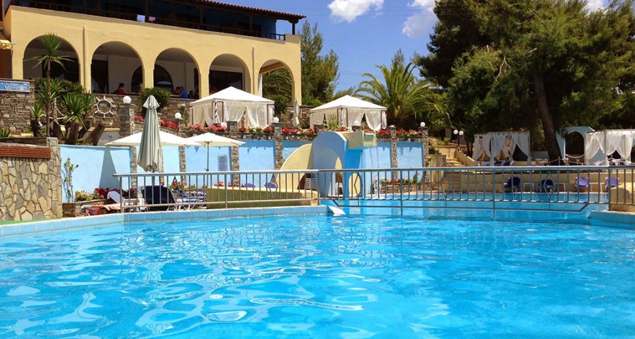 Хотелът е разположен в тиха, потъваща в зеленина местност, в близост до пясъчно-чакъления плаж на живописния курорт Елия. Подходящ избор за спокойна семейна почивка. На разположение са многообразни магазини и модерни барове, традиционни гръцки таверни и популярни нощни клубове