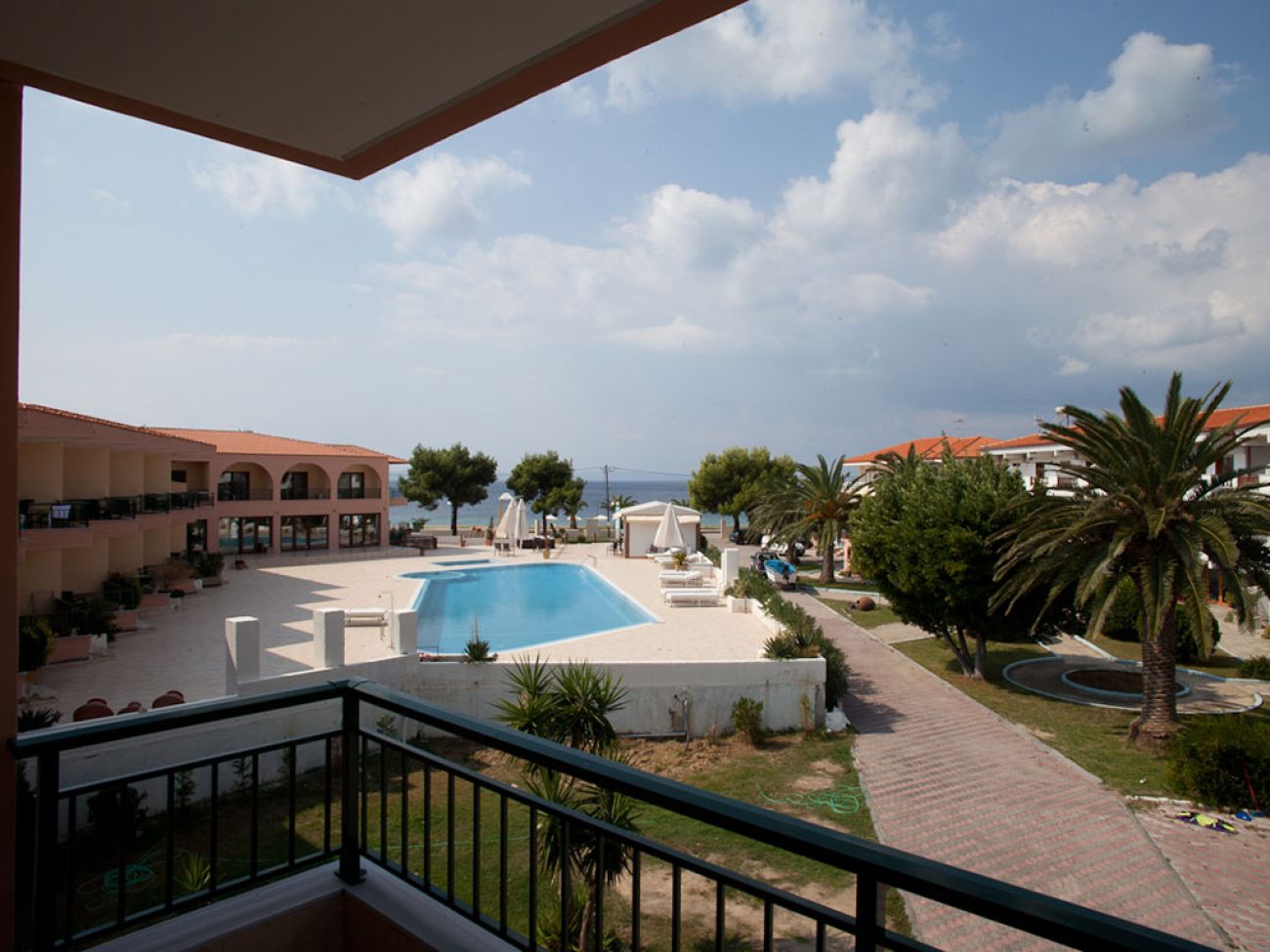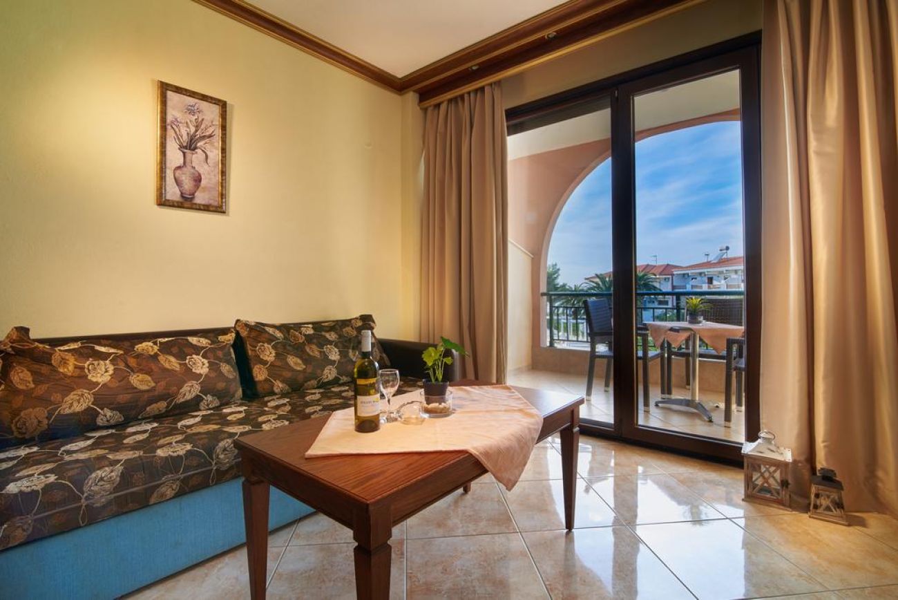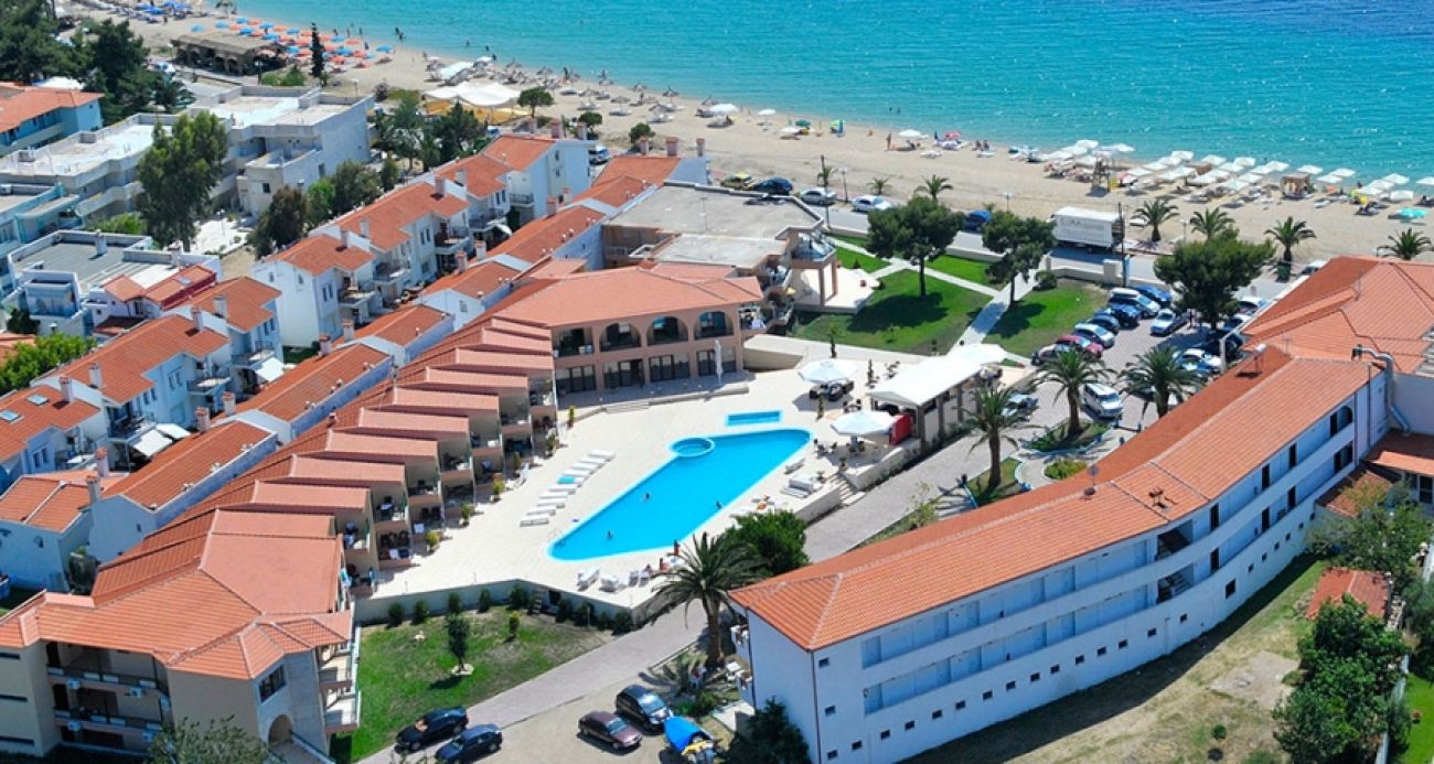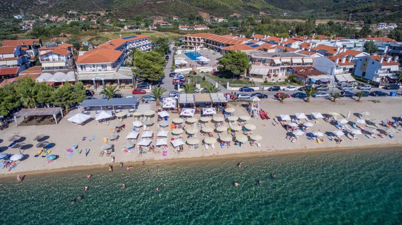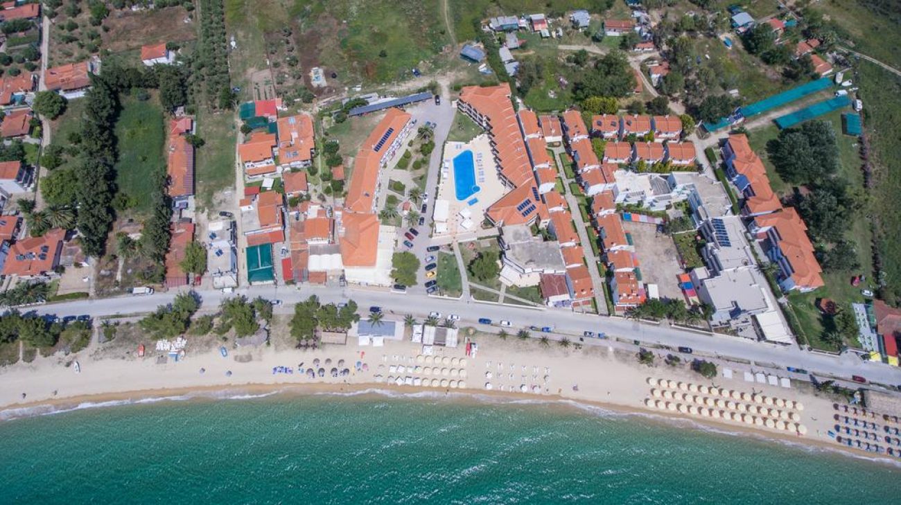 Toroni Blue Sea се намира на брега на морето с пясъчен плаж, на 1 км от Порто Куфо, на 15 км от селище Неос Мармарас, на 130 км от град Солун. Удобно разположен близо до магазини, кафенета и таверни. Подходящ избор за спокойна семейна почивка.
