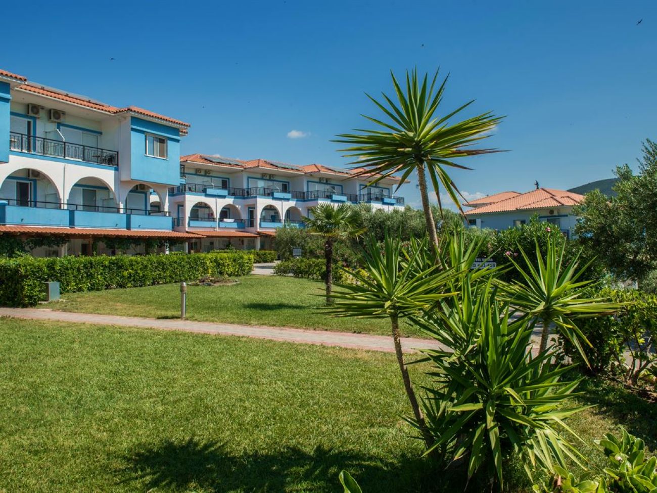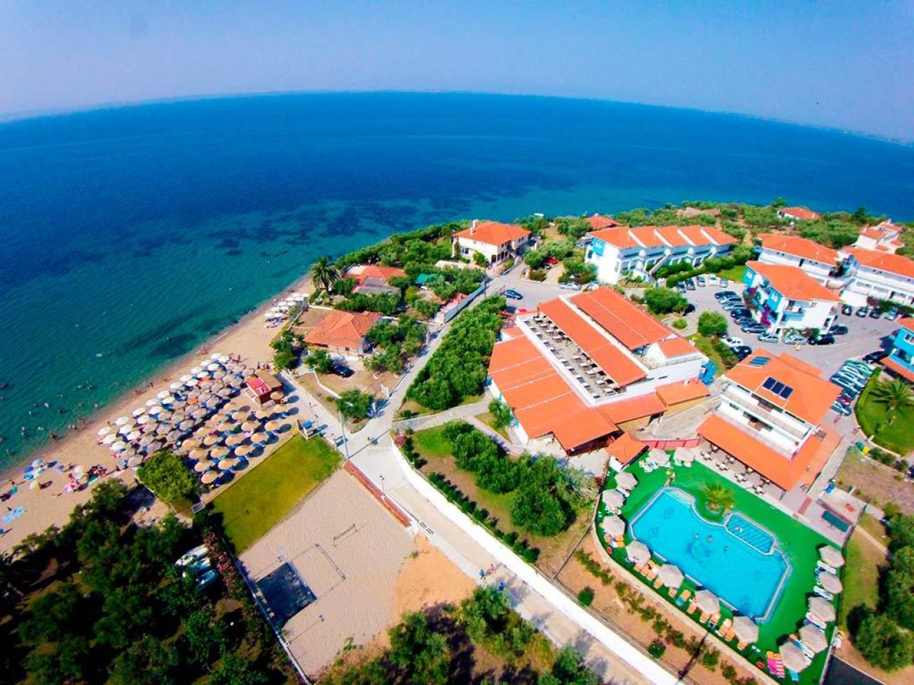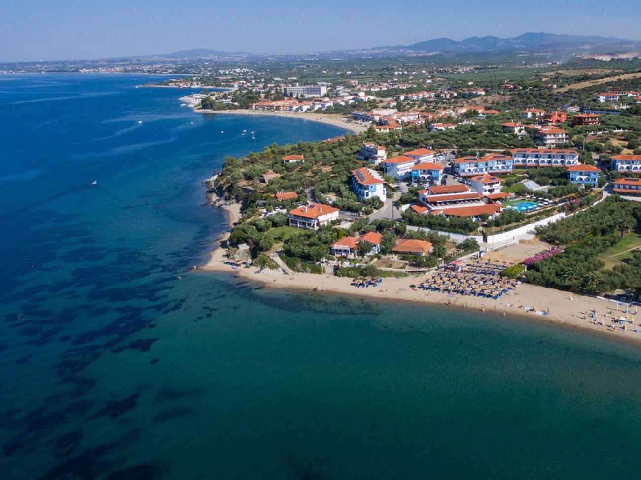 Комплекс бунгала сред градина с маслини на брега на пясъчен плаж. Зелена територия, великолепно чисто море, комфортни стаи, ресторант, басейн, интернет, анимация, детски клуб, качествено обслужване. Наблизо до хотела се намира селище Геракини с много мини маркети, сувенирни магазини и традиционни гръцки таверни.