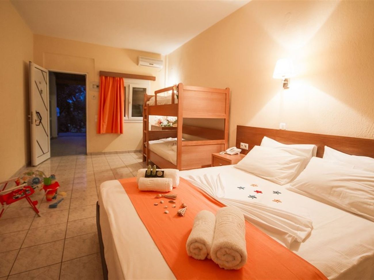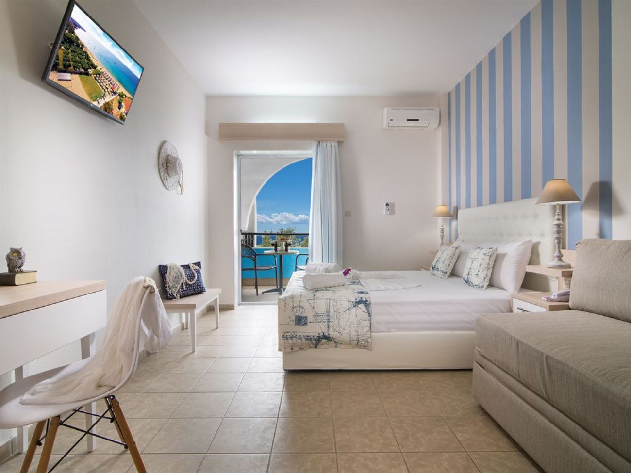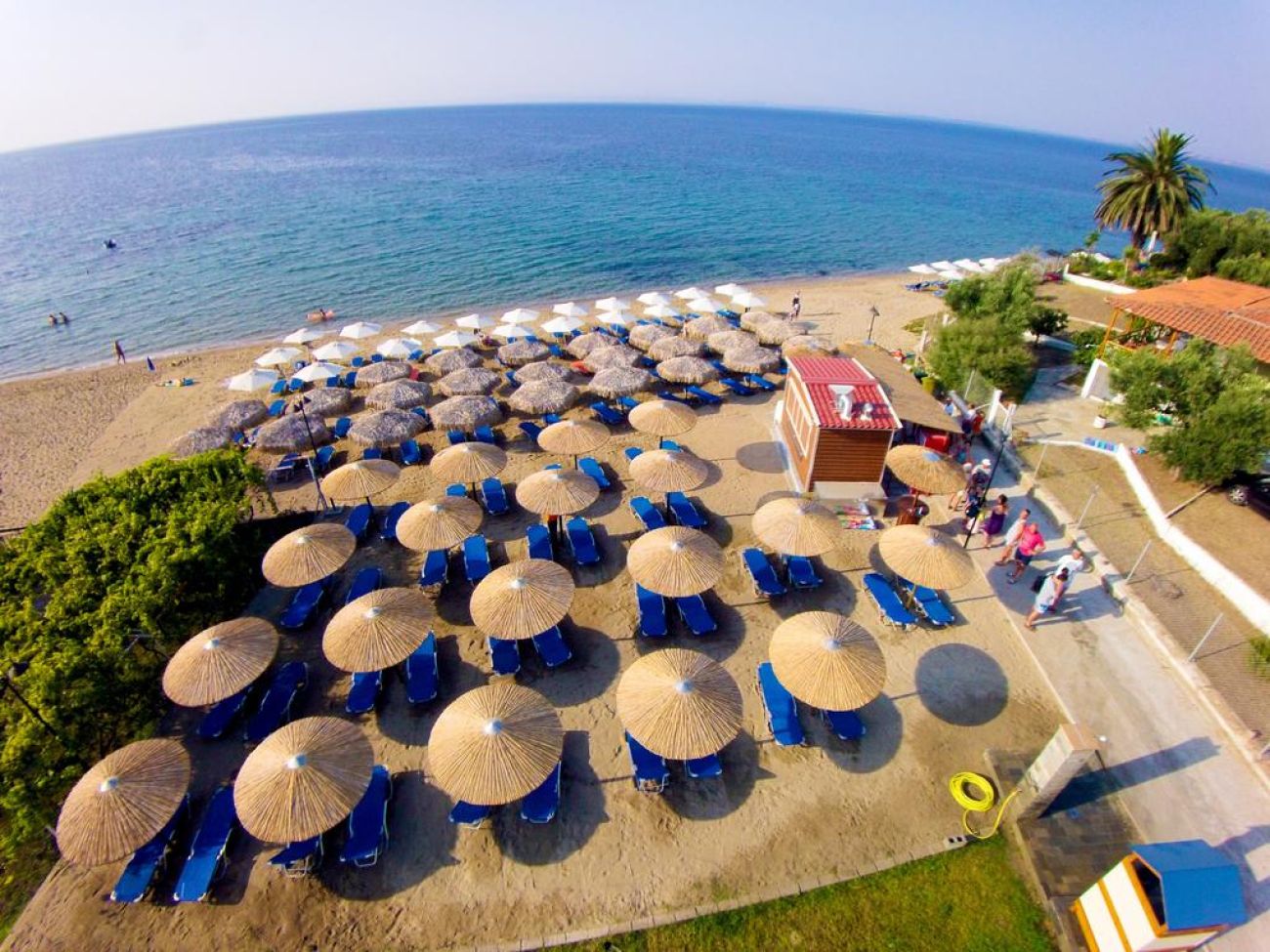 Комплекс бунгала сред градина с маслини на брега на пясъчен плаж. Зелена територия, великолепно чисто море, комфортни стаи, ресторант, басейн, интернет, анимация, детски клуб, качествено обслужване. Наблизо до хотела се намира селище Геракини с много мини маркети, сувенирни магазини и традиционни гръцки таверни.