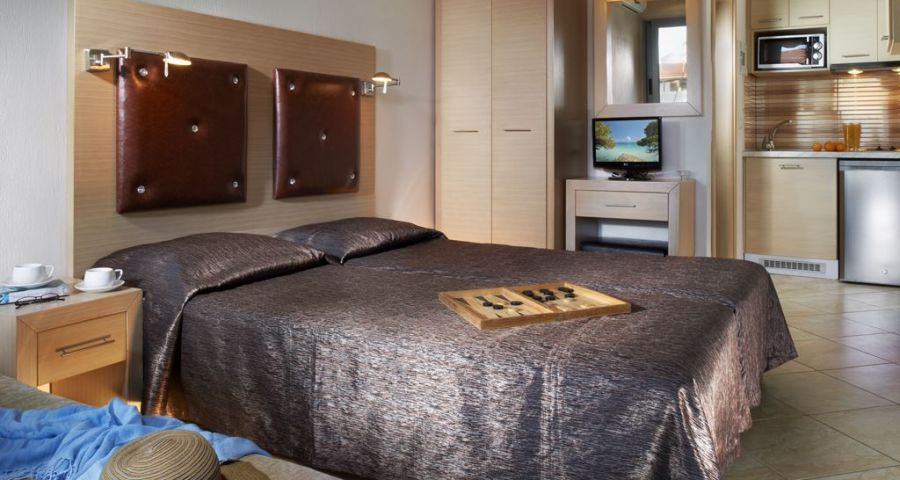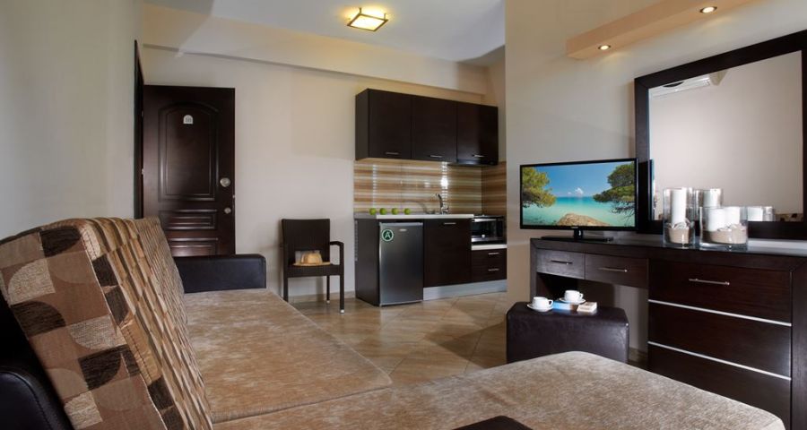 Комфортни студиа и двустайни апартаменти, разположени в живописното курортно селище Метаморфози, в непосредствена близост до пясъчен плаж. Идеален за спокойна икономична семейна почивка. Разположен е на 6 км от селище Никити, на 80 км от летище "Македония" в Солун.