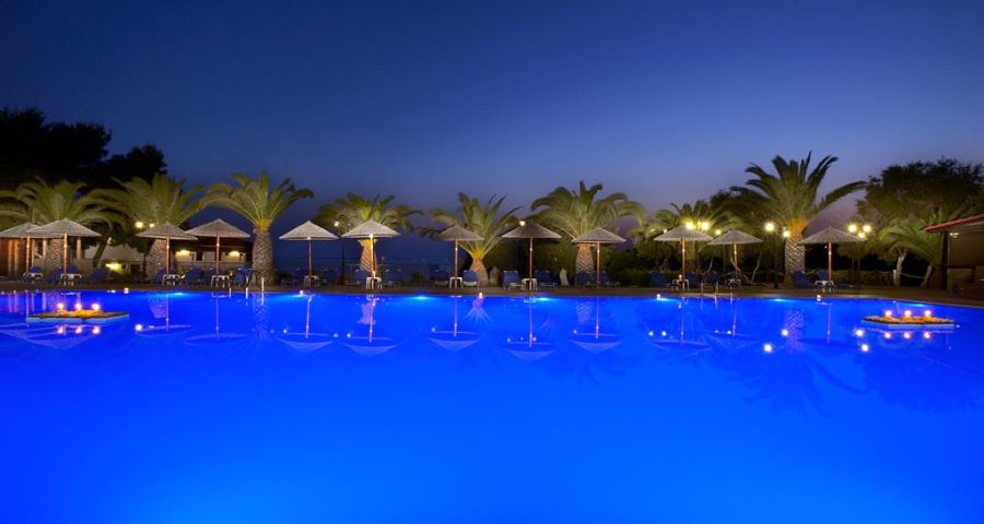 Blue Dolphin Sargani е комплекс разполагащ с чудесни градини с много зеленина и цветя. Хотелът се състои от малки сгради, разпръснати на голяма, добре озеленена и поддържана територия.