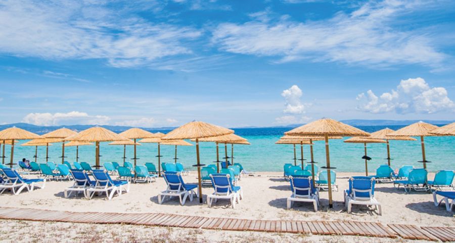 Гърция, полуостров Халкидики, Sithonia, Agios Nikolaos, на плажа