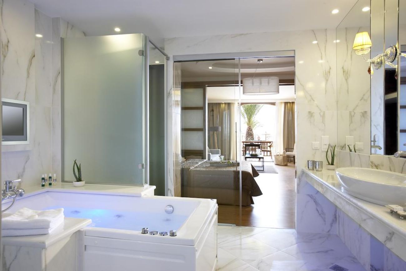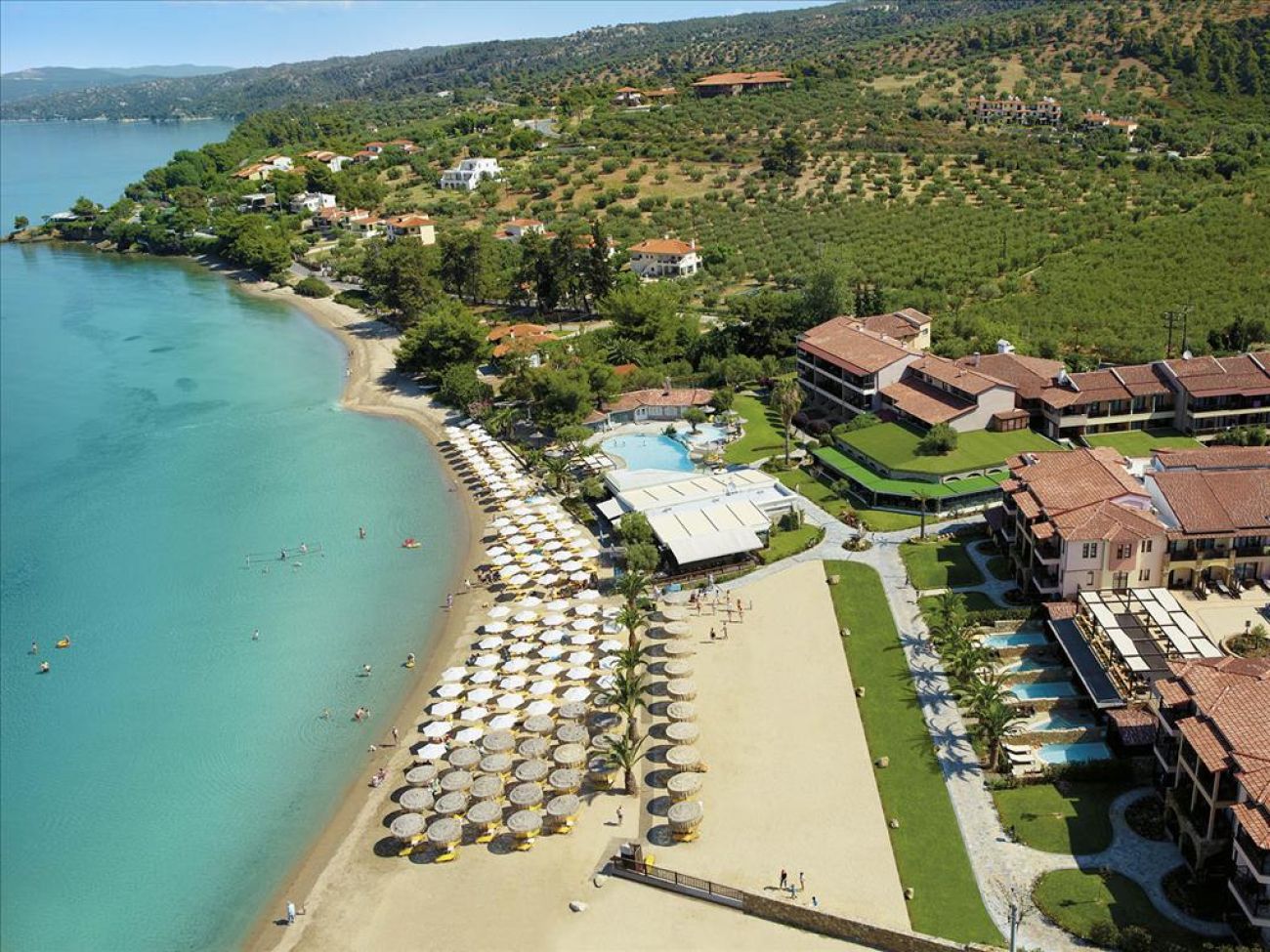 Anthemus Sea Beach Hotel & Spa е разположен директно на морския бряг, в малък залив и до леснодостъпен превъзходен пясъчен плаж. Всички стаи и суити са естетично обзаведени и декорирани и предлагат великолепна гледка към морето, басейна или близките борови гори.