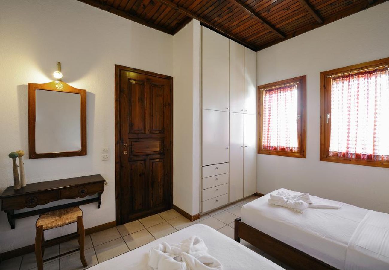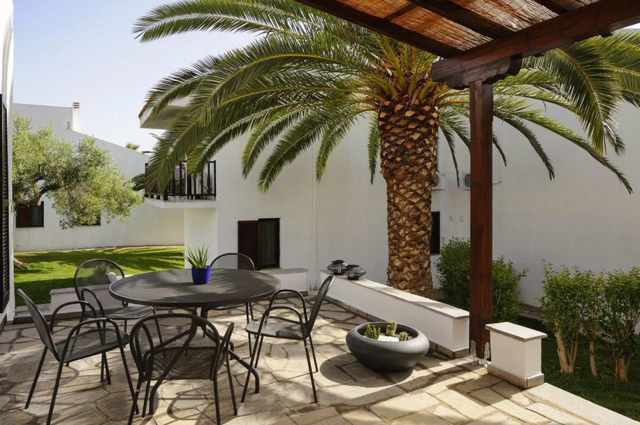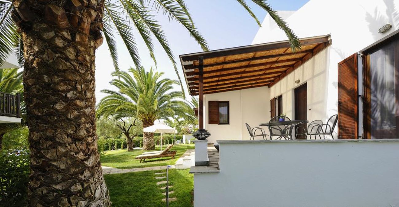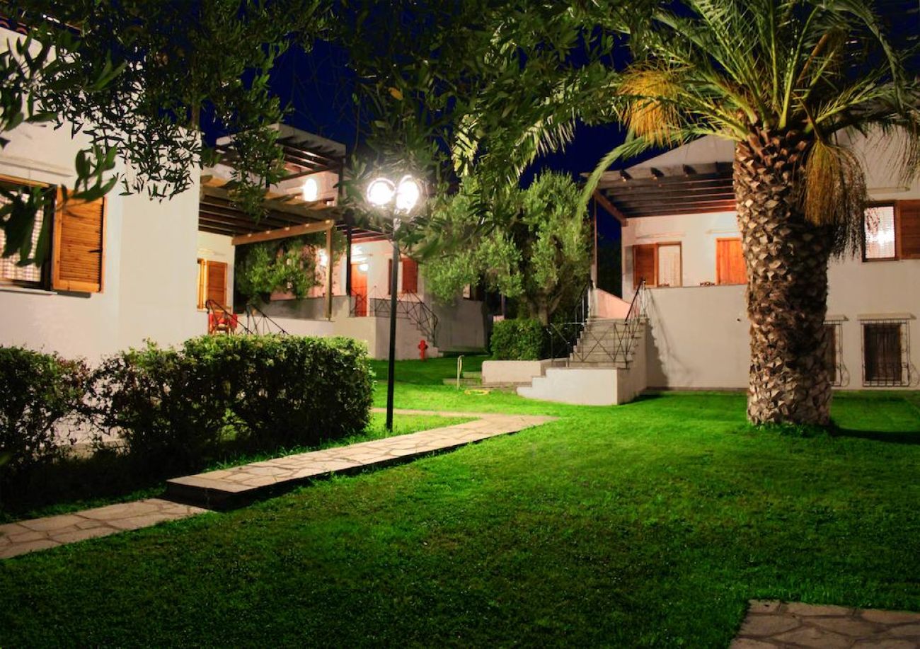 Комплексът се състои от 30 двуетажни мезонети, разположени в средата на добре поддържана градина. В селище Псакудия са на разположение множество барове, ресторанти и магазини. Разположен сред стара маслинова гора, Trikorfo Beach предоставя изглед към плажовете със златист пясък и се простира от брега с кристалночисти води до близките склонове с невероятна панорама.