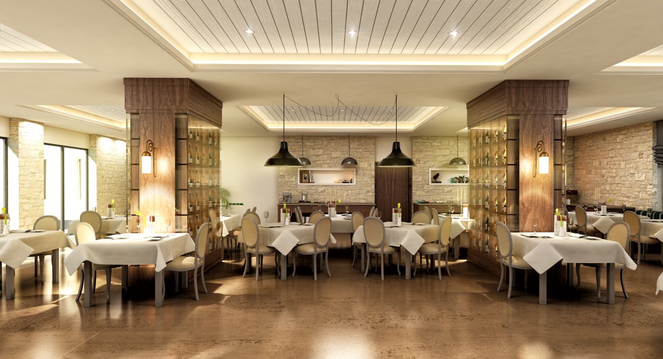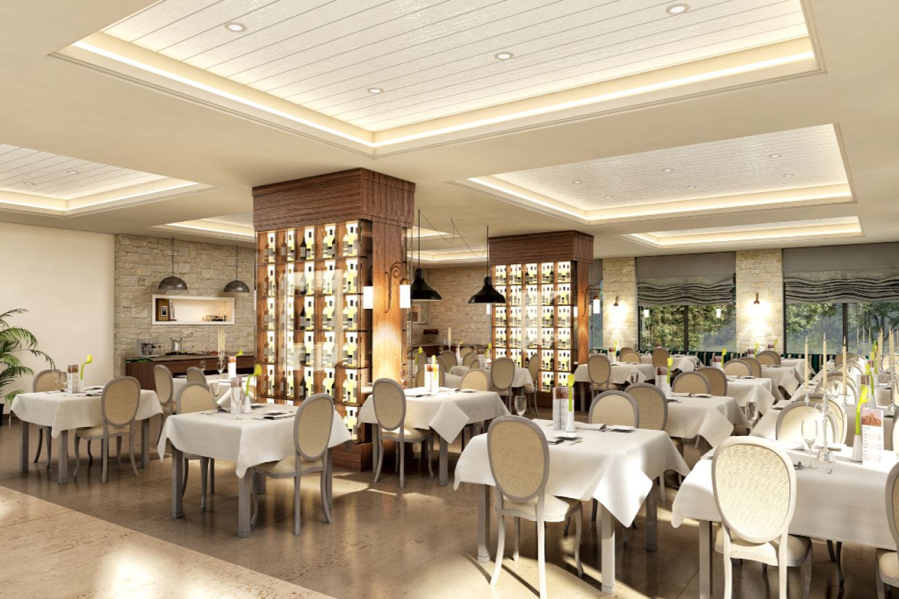 Основен ресторант-тераса, лоби бар, бар на басейна, бар на плажа