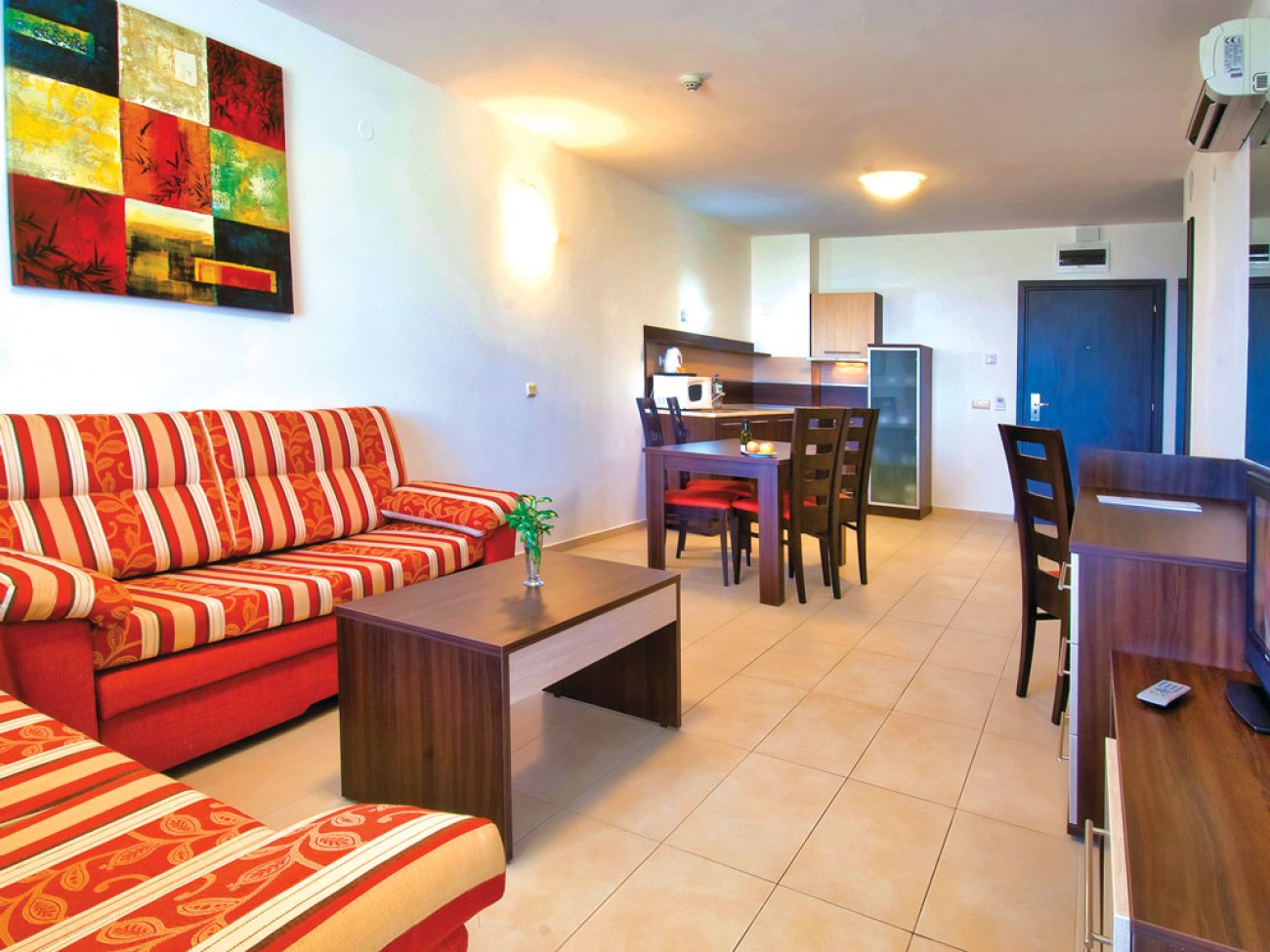 В хотела са на разположение и едноспални апартаменти (две помещения – спалня и дневна с възможност до две допълнителни места - максимално настаняване до 4-ма възрастни) и двуспални апартаменти (три помещения – две спални и дневна с разтегателен диван, възможност за до две допълнителни места - максимално настаняване до 6-ма възрастни).