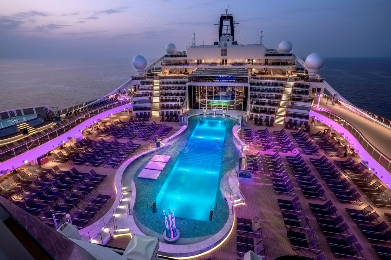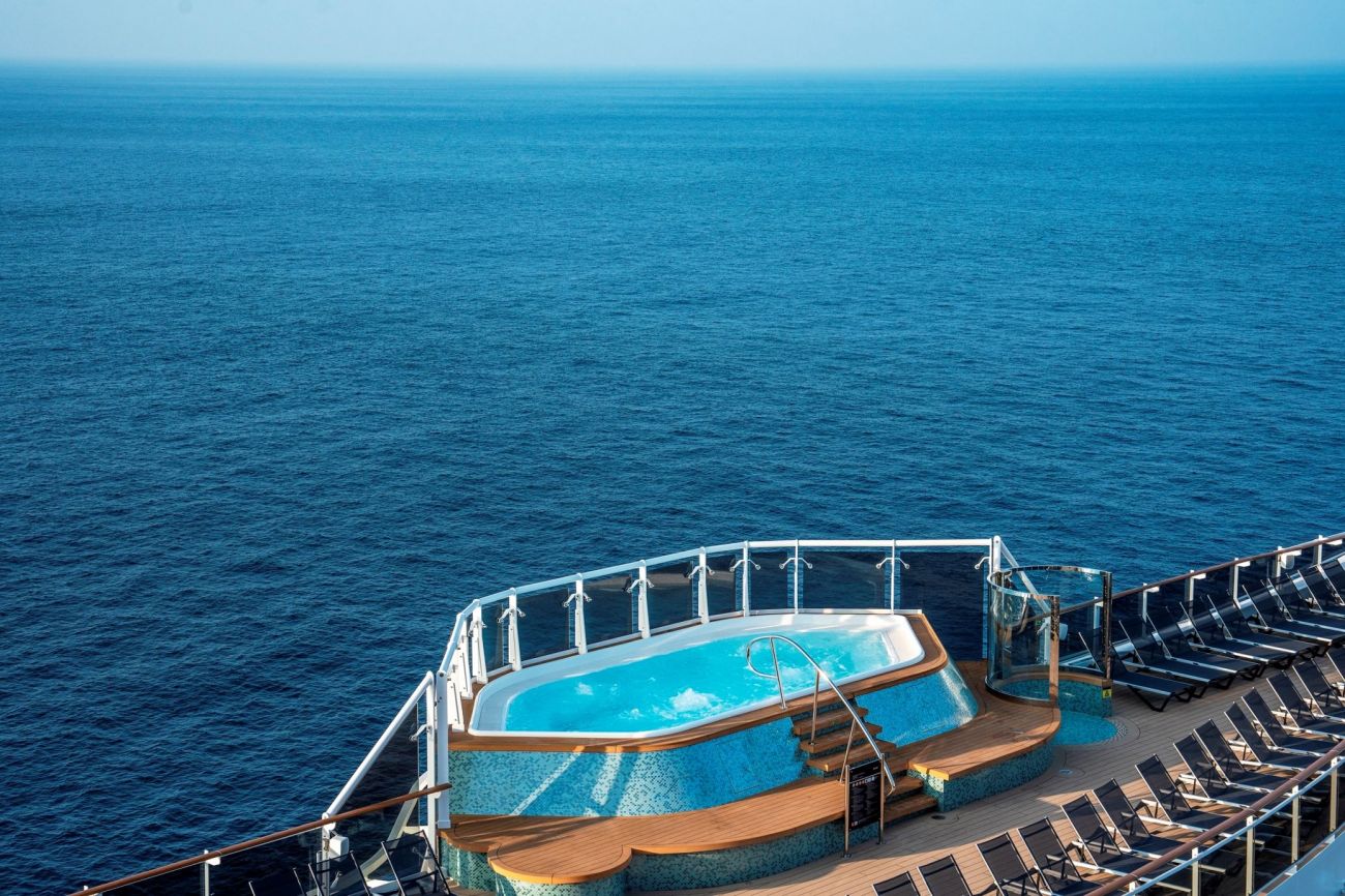 На борда има няколко басейна, слънчева палуба с шезлонги, джакузи, СПА център, фитнес, фризьор, маникюр, масажи.