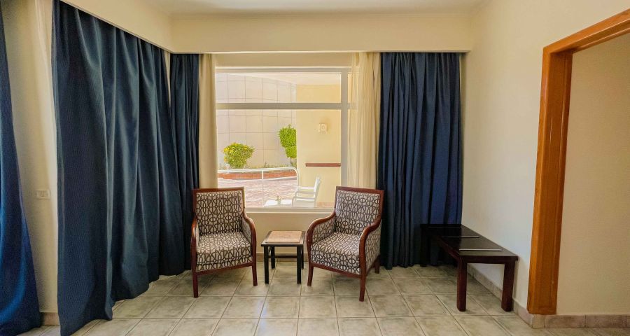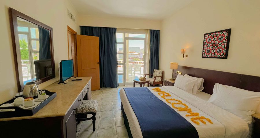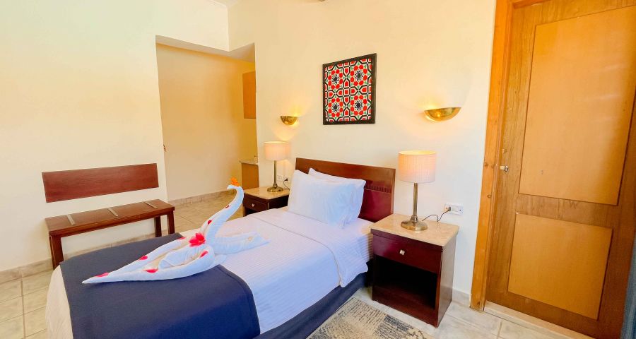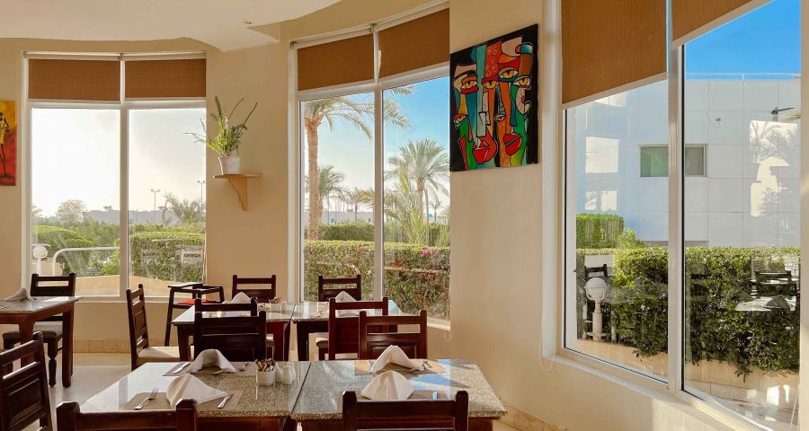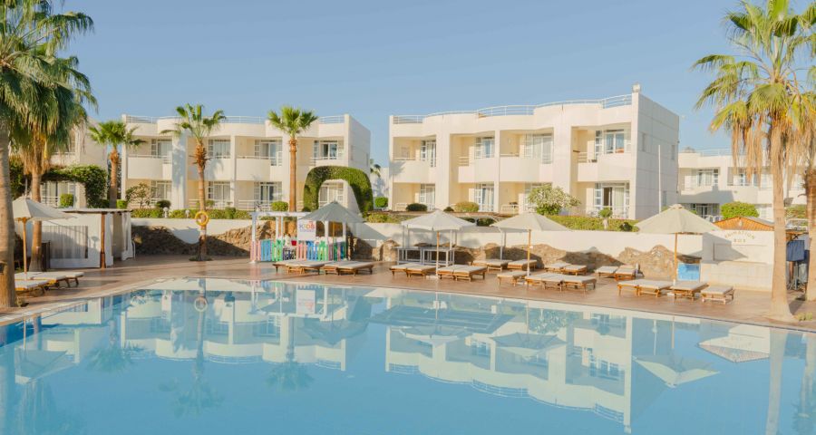 Намира се на 18 км от летище Шарм ел Шейх, на 8 км от централната част на курорта Наама Бей и на 4 км от Стария град, на 500-600 м от брега на морето (2-ра линия).