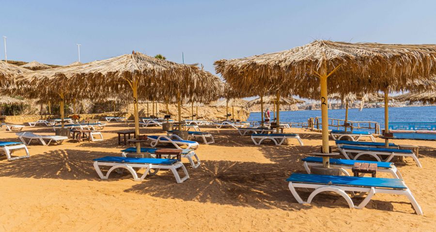 Собствен, пясъчен, коралов, на 500-600 метра от хотела. Шатъл до плажа на всеки час. Чадъри, шезлонги и плажни кърпи на плажа и при басейна – безплатно.