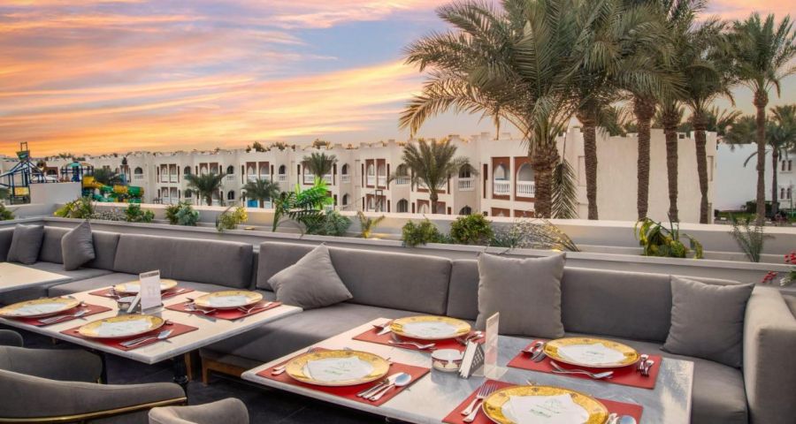 Основен ресторант, 5 а-ла-карт ресторанта (италиански, египетски, индийски, монголски, морски-платен), 13 бара, 3 открити басейна (отопляем през зимата), 1 открит басейн само за възрастни (отопляем през зимата), 8 водни пързалки за възрастни и 4 за деца, дневна и вечерна анимация, музика на живо, амфитеатър, магазин за сувенири, банкомат, денонощна рецепция, СПА център.