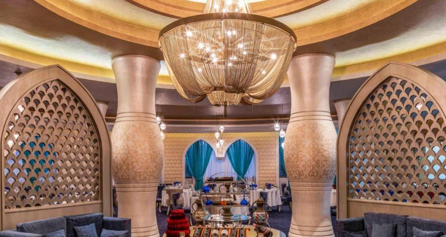 Два основни ресторанта, 10 а ла карт ресторанта (азиатски, бразилски, италиански, френски, гръцки, интернационален, барбекю, японски-платен, турски, рибен –с предварителна резервация, съгласно концепцията на хотела), сладкарница, 12 бара (1 от които 24 часа), 7 открити и 1 закрит басейн, аквапарк Aquaventure (на втора линия през пътя - 6 кули с 23 водни пързалки), стена за катерене, интерактивен фонтан, СПА център, дискотека, магазини, 8 конферентни зали, паркинг.