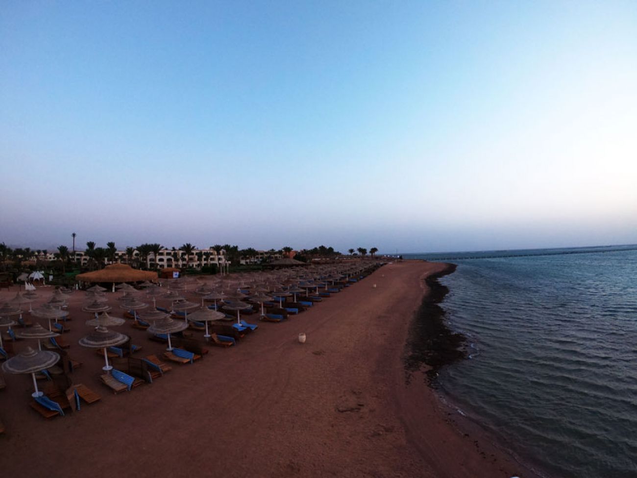 Собствен, пясъчен. Чадъри, шезлонги и плажни кърпи на плажа и при басейна - безплатно.