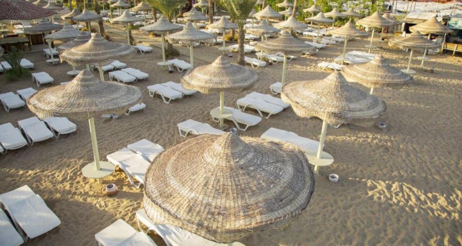 Собствен, пясъчен, кей, достига се през крайбрежната алея. Чадъри и шезлонги на плажа и при басейна - безплатно. Плажни кърпи - безплатно.