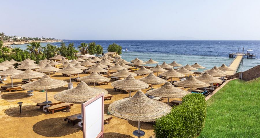 Собствен, пясъчен и коралов, кей; достига се с шатъл бус. Чадъри и шезлонги на плажа и при басейна - безплатно. Плажни кърпи - безплатно.