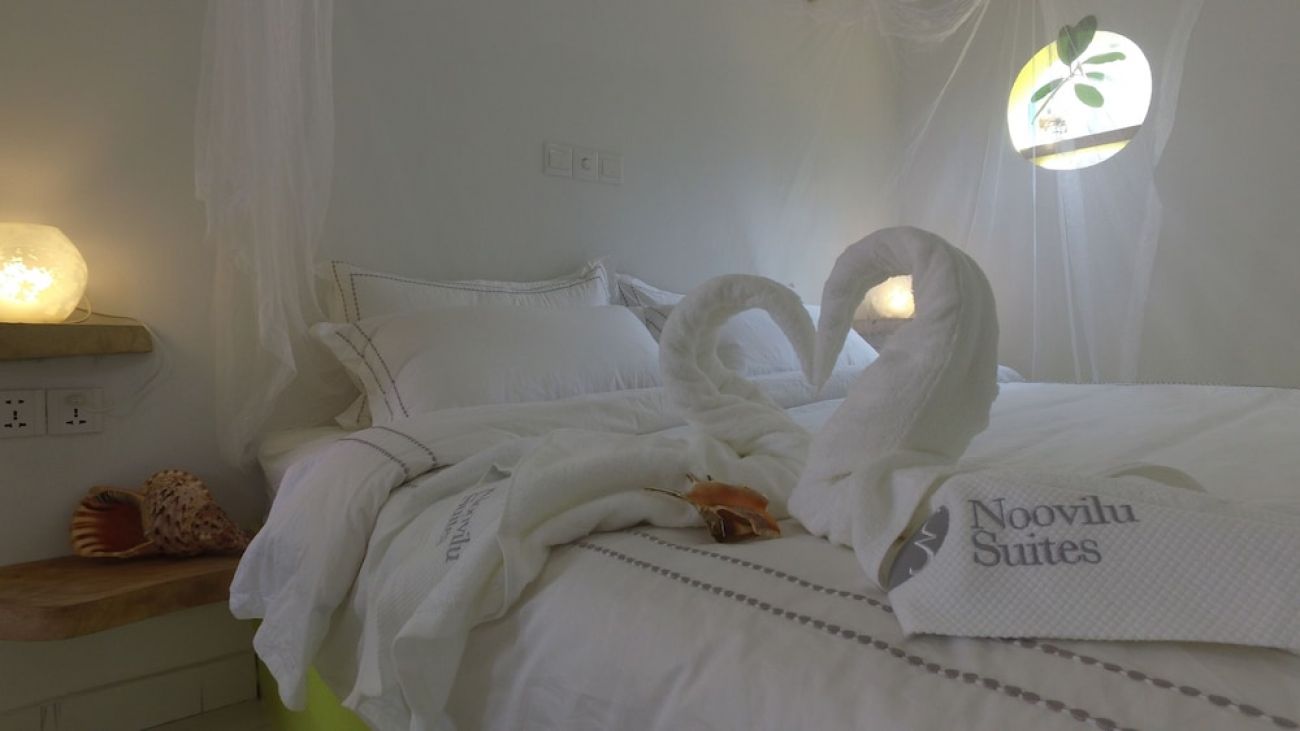 МестоположениеС престоя си в Noovilu Suites Maldives в Mahibadhoo ще бъдете на плажа, на 5 минути пеша от обществения плаж Bunbaru и на 1 минута с кола от плажа Dhigurah. Тази къща за гости на плажа е на 0,1 мили (0,1 км) от плажа Бикини и на 0,1 мили (0,1 км) от плажа Дангети.УдобстваНасладете се на гледките от терасата на покрива и градината и се възползвайте от удобства като безплатен безжичен достъп до интернет. Допълнителните удобства в тази къща за гости включват безплатно гледане на деца, фризьорски салон и място за пикник.СтаиЧувствайте се като у дома си в една от 7-те стаи за гости. Вашето легло с възглавница се предлага с пухени завивки и чаршафи от египетски памук. Самостоятелните бани с душове разполагат с дъждовни душове и безплатни тоалетни принадлежности. Удобствата включват сейфове и машини за кафе/чай, а домакинството се извършва всяка седмица.ХраненеЗадоволете апетита си за обяд или вечеря в In-house Restaurant, ресторант, който е специализиран в интернационалната кухня, или останете и се възползвайте от обслужването по стаите (в ограничени часове). Безплатна закуска на шведска маса се сервира всеки ден от 8 сутринта до 11 сутринта.АтракцииРазстоянията се показват с точност до 0,1 миля и километър. Обществен плаж Bunbaru - 0,4 км / 0,3 мили Плаж Dhigurah - 0,1 км / 0,1 мили Плаж Бикини - 0,1 км / 0,1 мили Плаж Dhangethi - 0,1 км / 0,1 мили Плаж Rannalhi - 0,1 км / 0,1 мили Плаж Feridhoo - 0,1 км / 0,1 мили Предпочитаното летище за Noovilu Suites Maldives е Velana Intl. Летище (MLE) - 4,5 км / 2,8 мили Бизнес удобстваПрепоръчаните удобства включват химическо чистене/перални услуги, 24-часова рецепция и съхранение на багаж. Осигурен е трансфер от/до летището срещу допълнително заплащане (предлага се при заявка), а на място има паркинг за мотоциклети.