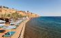 Собствен, пясъчно-коралов. Чадъри и шезлонги на плажа и при басейна - безплатно. Плажни кърпи - срещу депозит.