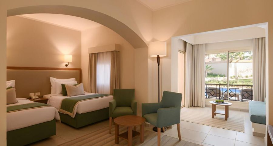 Намира се на 11 км от летище Шарм ел Шейх, на 20 км от центъра на Нама бей и на 30 км от Стария град и базар, на 10 км от nлощад Сохо, на брега на морето в залива Набк, един от най-предпочитаните за гмуркане и шнорхелинг.