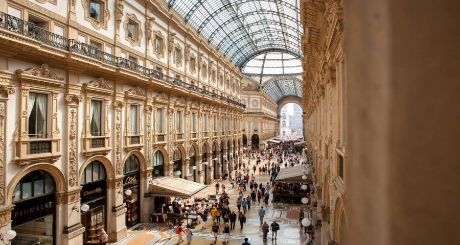 Накрая ще се потопите в магията на галерията Виктор Емануил II - елегантна покрита търговска галерия, наричана "салона на Милано", където историята и луксът се срещат под един покрив от стъкло и желязо.