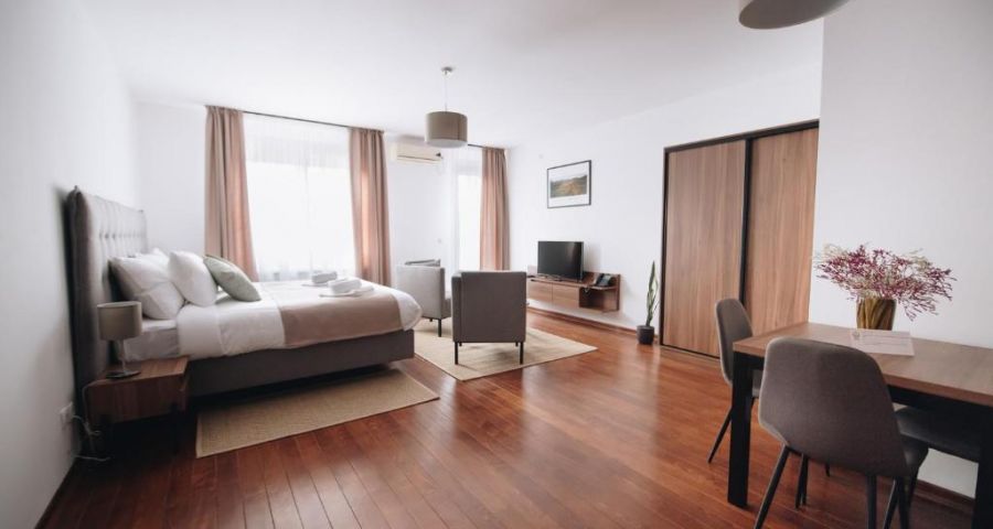 Стаите разполагат с кът за сядане с телевизор с плосък екран и собствена баня със сешоар и душ.