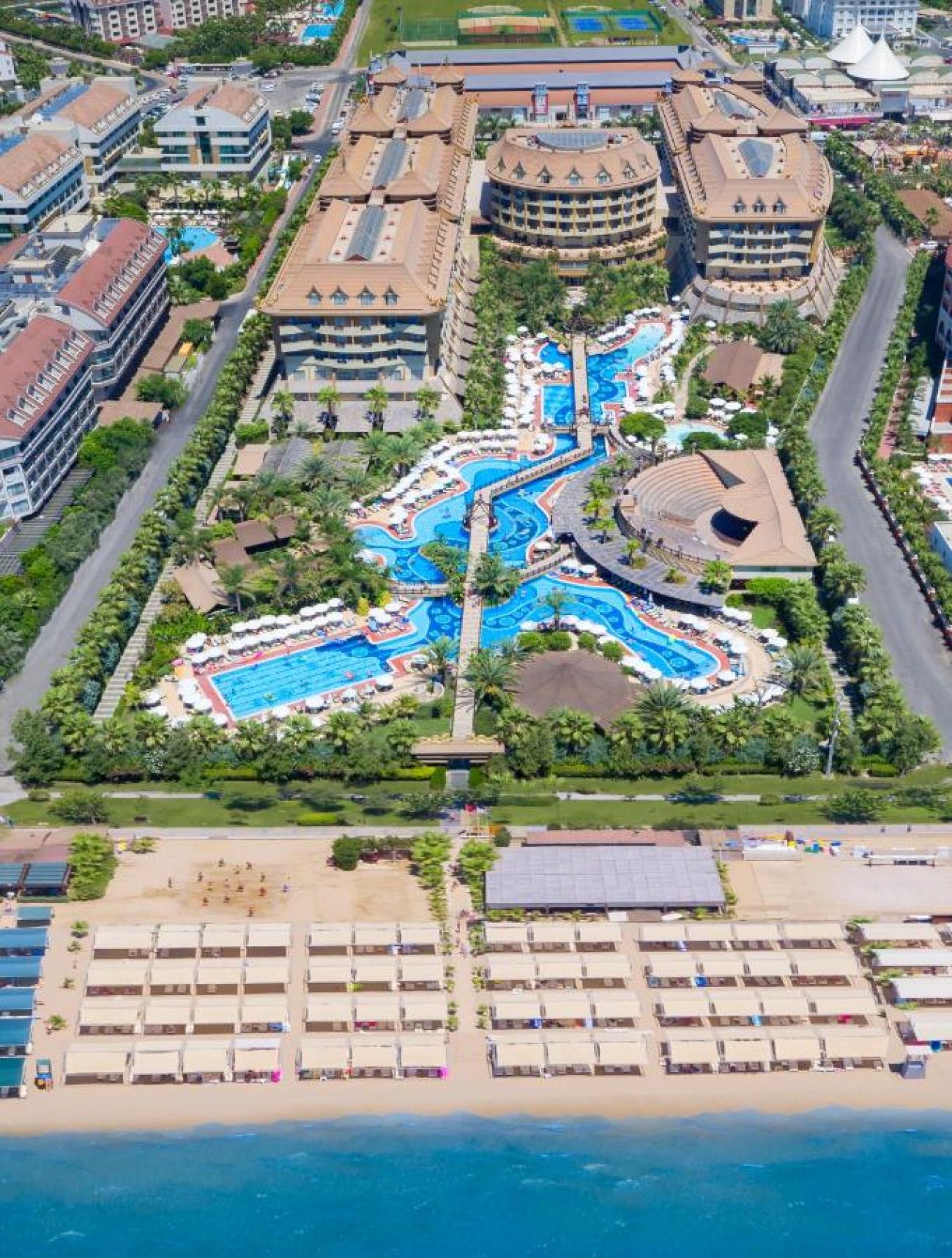 Основен ресторант, 4 а-ла-карт ресторанта (италиански, азиатски, турски, рибен - срещу заплащане, с предварителна резервация, съгласно концепцията на хотела), бистро, сладкарница, снек ресторант, 9 бара, открит и закрит басейн, аквапарк, СПА център, дискотека, магазини, 4 конферентни зали, паркинг.