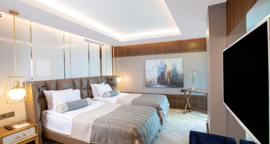 Хотелът разполага с общо 499 стаи, като всички са оборудвани с климатик, интернет (безплатен), телевизор, телефон, сейф, мини бар (безплатен), сет за чай/кафе, баня с душ/вана, сешоар, балкон. Смяна на спалното бельо - 3 пъти седмично.