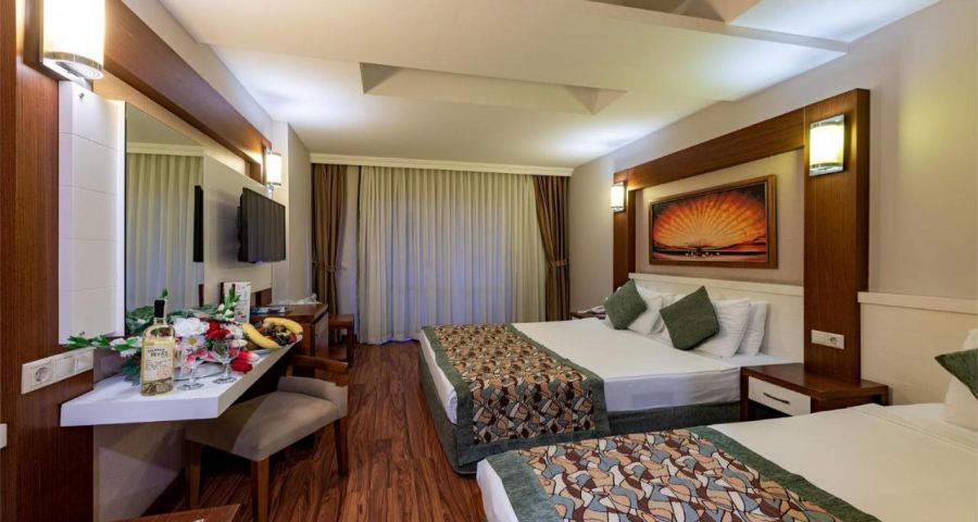 Кемер, където планината Тавър се среща с тюркоазения цвят на Средиземно море, е в центъра; С цел предоставяне на всички видове услуги, от които се нуждаете на почивка с истинско качество; Нашият "ALL INCLUSIVE" хотел ви очаква, нашите скъпи гости, с великолепната си гледка към планината, украсена със зеленина, заедно с уникалното си слънце и плаж.