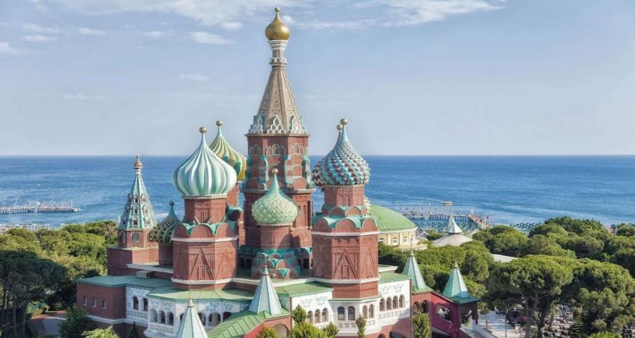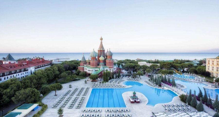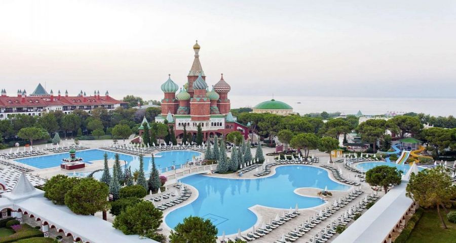 Asteria Kremlin Palace се намира в Кунду, на 12 км от летището в Анталия и на 21 км от центъра на град Анталия. Хотелът е с уникална архитектура наподобяваща руските дворци.