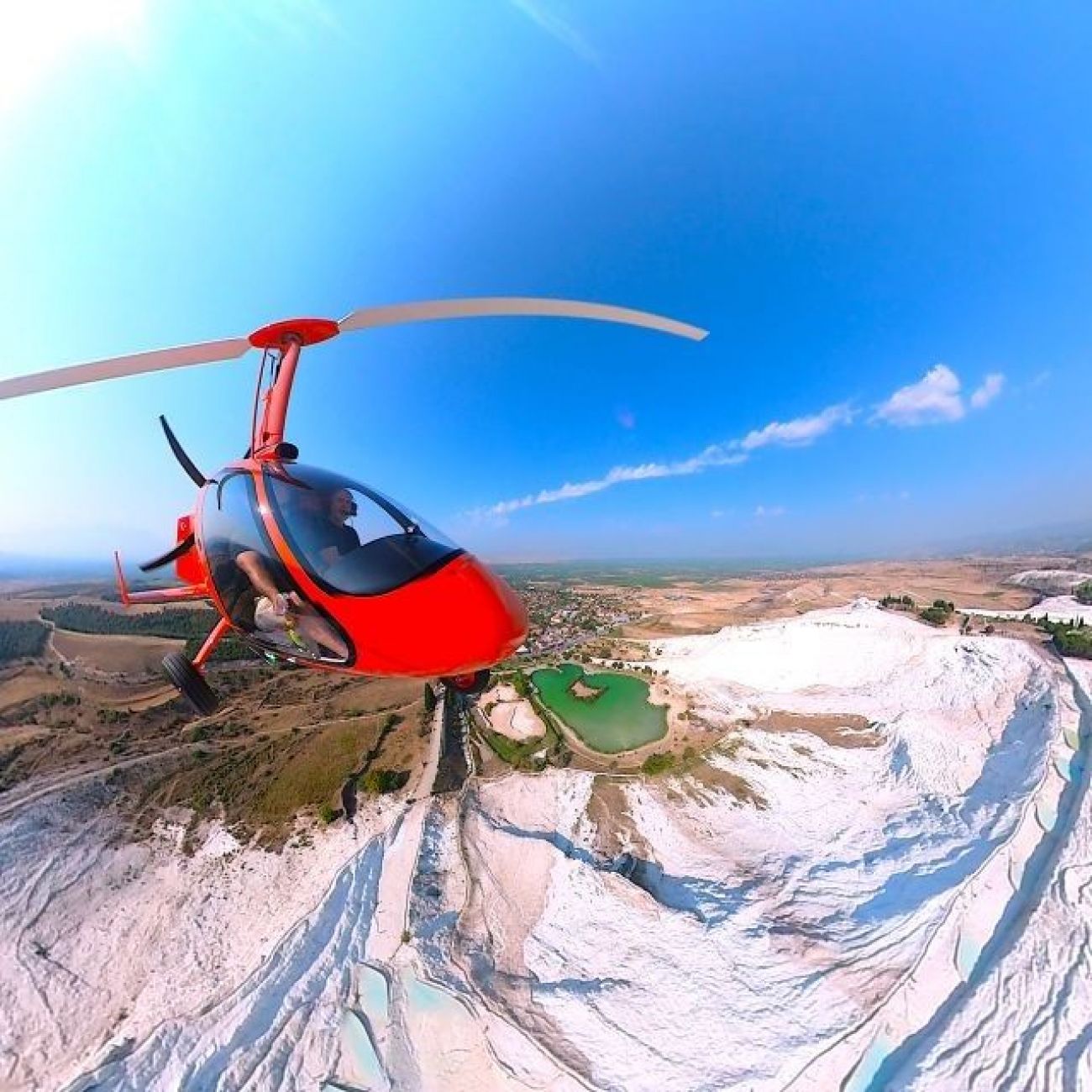 Полет с жирокоптер над природния феномен Памуккале и древния град Хиераполис. • инструктаж • професионален пилот • транспорт