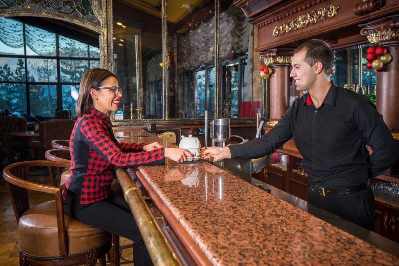 Лоби бар в бароков стил, уиски бар, ресторант Хънтърс, ресторант Галерия, СПА бар, външен кафе-бар