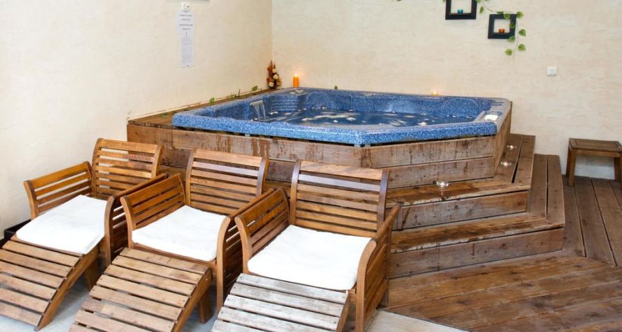СПА външен 34 градуса и вътрешен 36 градуса басейни и вътрешно 36 градуса и външно 36 градуса джакузи, сауна, парна баня, СПА зона само за възрастни над 16 г. - 2 сауни, 2 парни бани, релакс зона с камина, фитнес, детска анимация