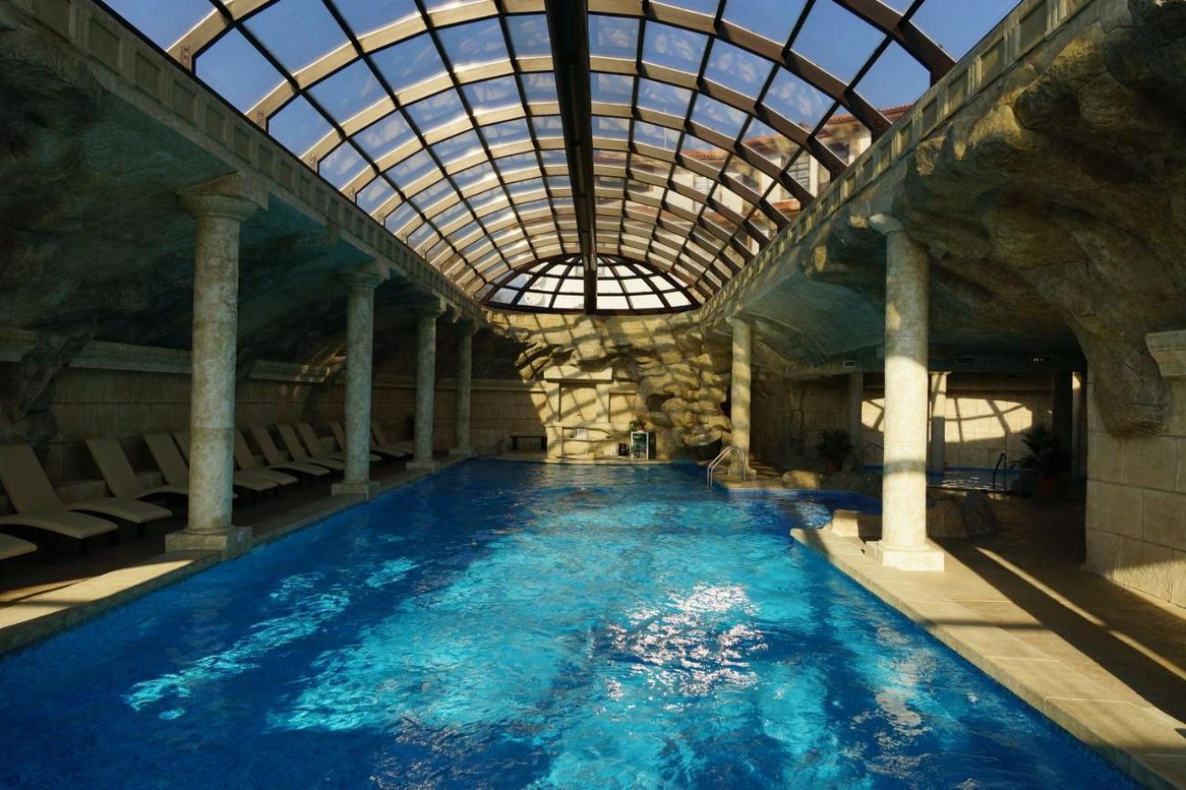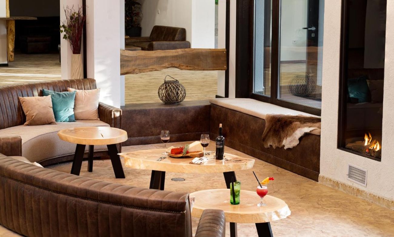 Гостите на комплекса ще се насладят на уникални терапии с вино и минерална вода сред неповторимия интериор на Спа центъра на комплекса.