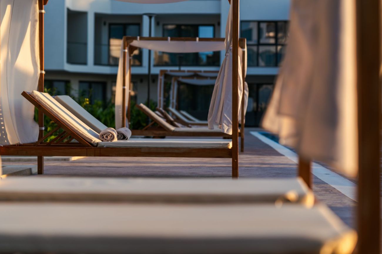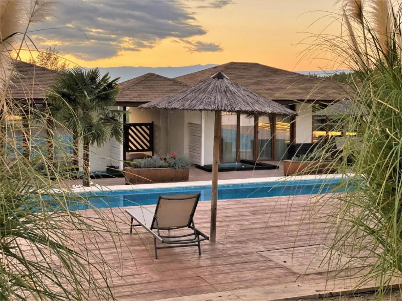 Вилите са едноетажни, с един или два санитарни възела, разположени са около общ минерален басейн и разполагат с индивидуално джакузи и кът за отдих на открито.
