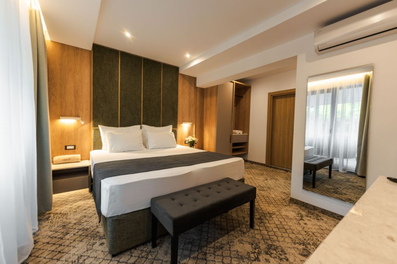 Медите Спа Резорт 5* разполага с 86 помещения, от които 79 Делукс и Премиум стаи, 4 Двуспални апартамента и 3 Джуниър суит помещения, в които могат да се настанят настанят 170 човека на редовни легла с възможност за настаняване на деца или трети възрастен на допълнително легло в по-голяма част от помещенията. Хотелът предлага на своите гости охраняем външен паркинг. Нашите пиколи ще се погрижат за Вашия автомобил, докато Вие се наслаждавате на престоя си при нас.