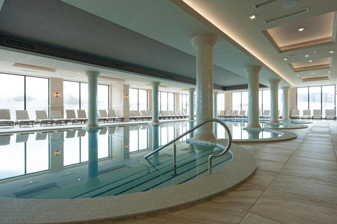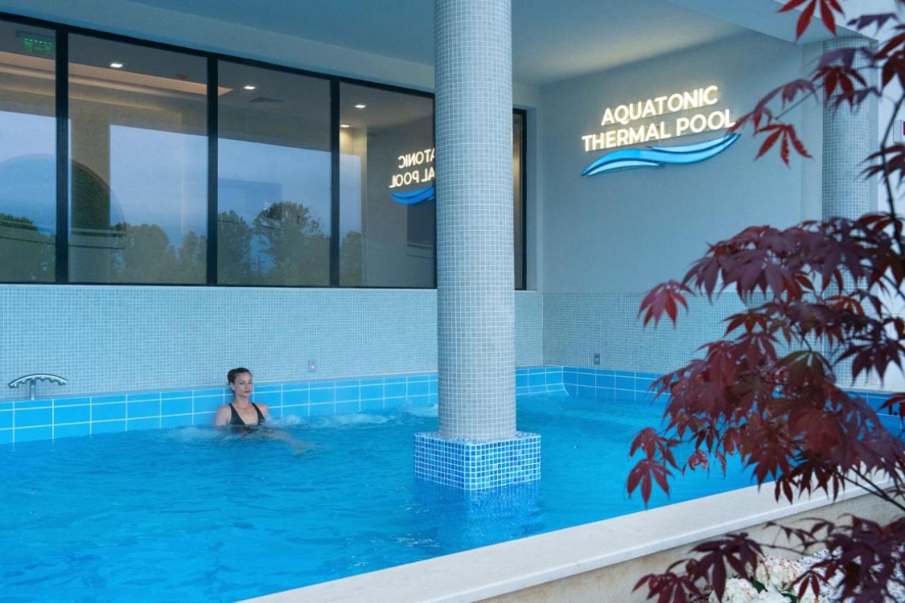 Имаме външни и вътрешни минерални басейни – два за възрастни и два детски, плюс акватоничен функционален басейн с открита и закрита част.