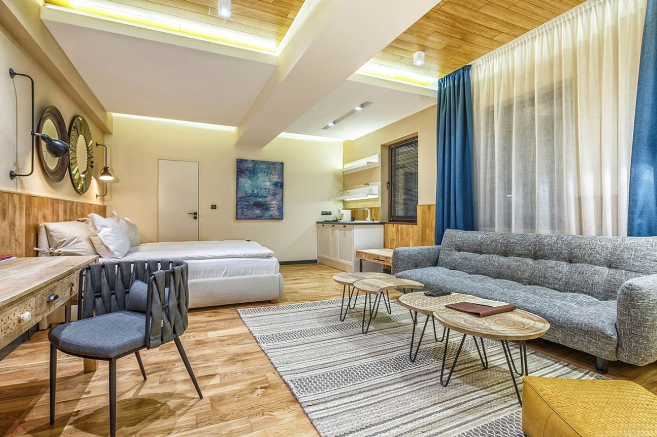 10 бутикови къщи изградени от различни видове еко материали. Всяка къща е разделена и разполага с две студиа. Има възможност за наемане на цяла къща или едно отделно студио. Всяко студио разполага със собствен вход, легло тип спалня, разтегателен диван, веранда с градинска мебел, баня с душ кабина, сейф, смарт телевизор и кухненски кът. А максималния капацитета на едно студио е до 2-ма възрастни и 2 деца (до 12год.) или 3-ма възрастни.