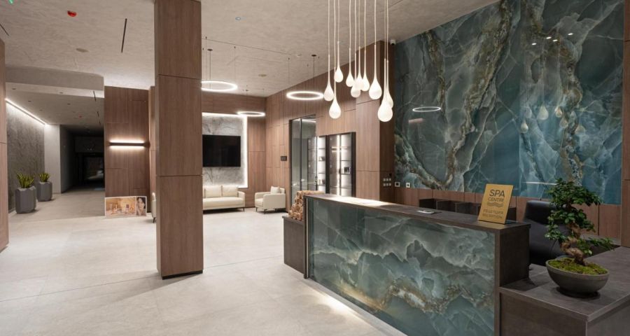 На разположение на гостите има сауна, инфраред сауна, парна баня, билкова сауна, джакузи, релакс зона, вътрешен басейн за възрастни, флотационен басейн с магнезиева сол, детски вътрешен басейн, тематични кабинети за терапии и ритуали.