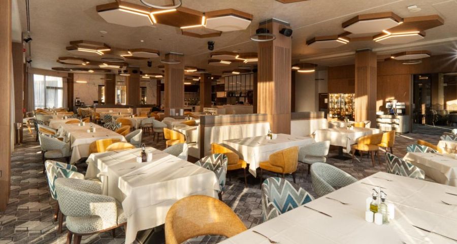 Сутрин се сервира закуска на шведска маса. Хотел и СПА Атмосфера Балнео разполага с ресторант, който сервира италианска, средиземноморска и местна кухня. При заявка се предлагат вегетариански, без млечни и вегетариански ястия.